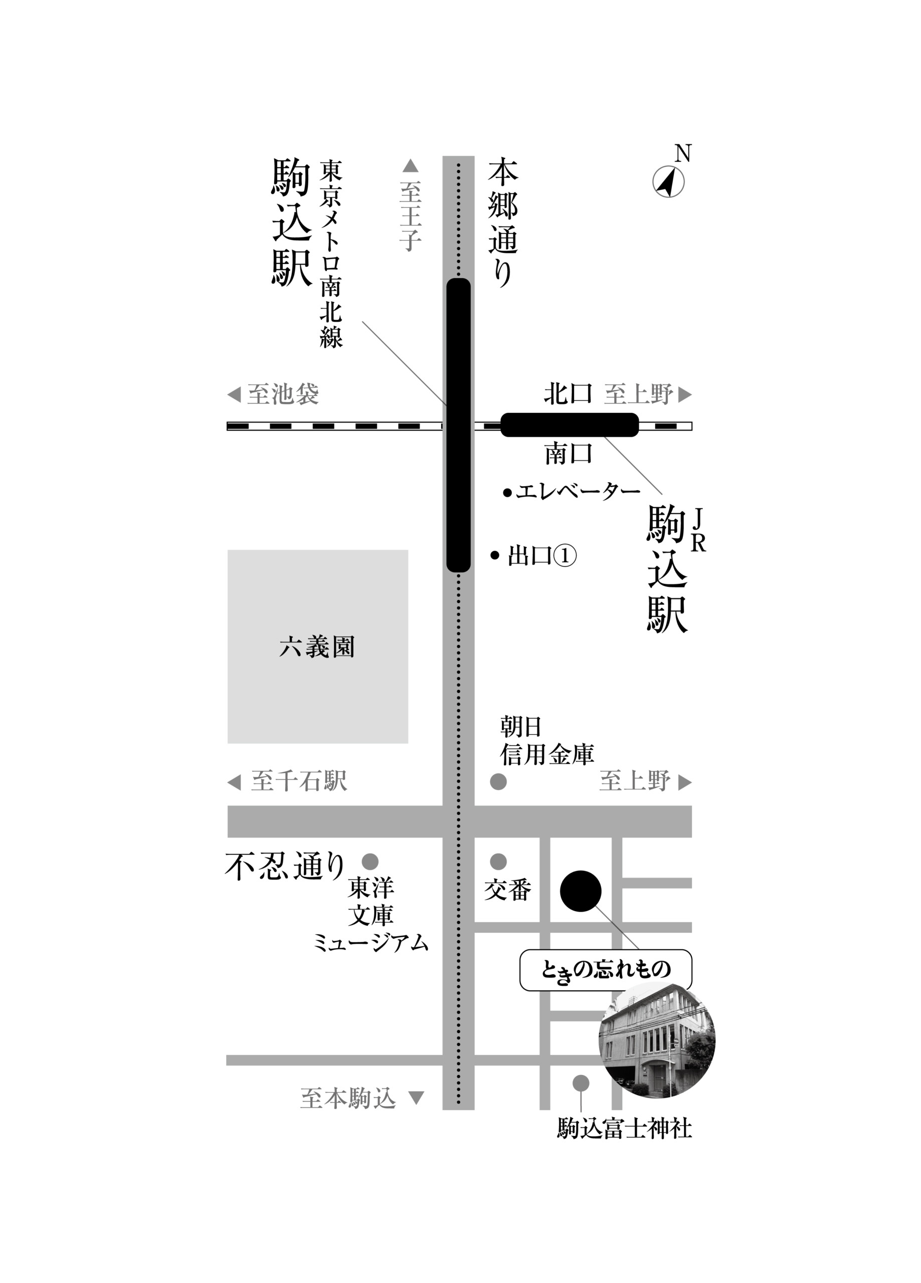 JR及び地下鉄南北線の駒込駅南口から徒歩約8分、名勝六義園の正門から ほど近く、東洋文庫から直ぐの場所です。