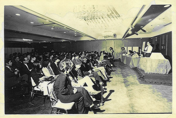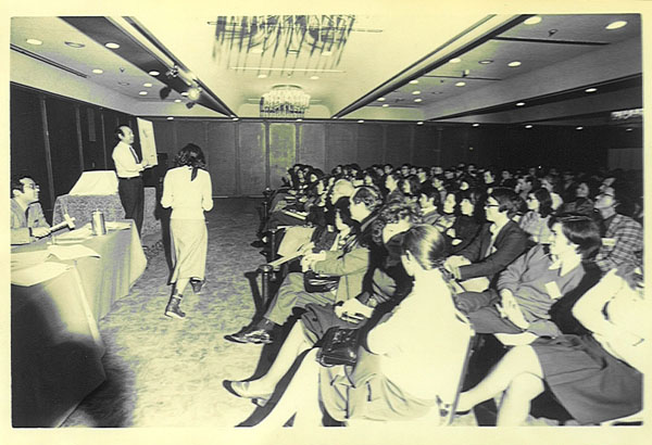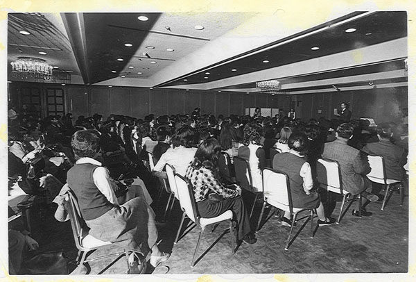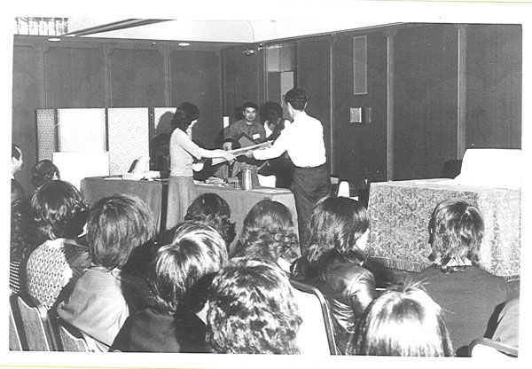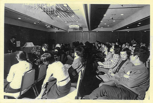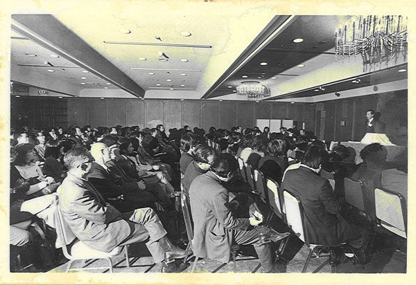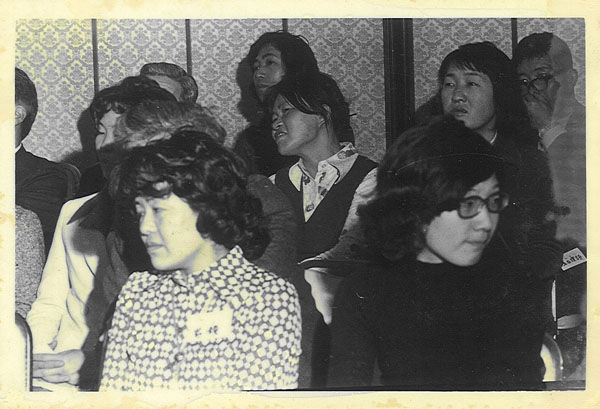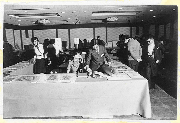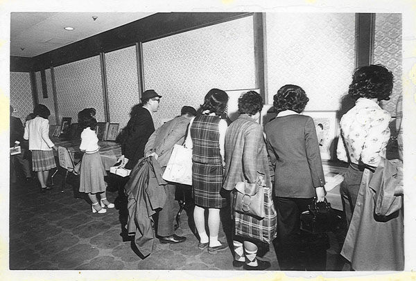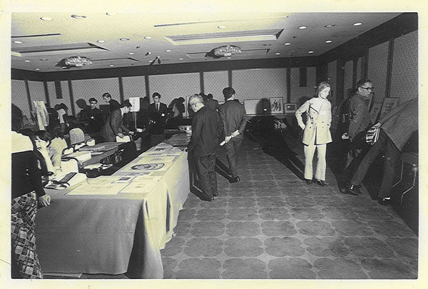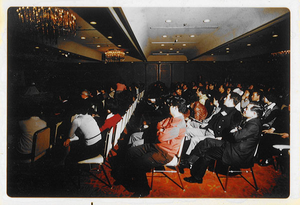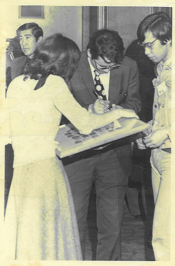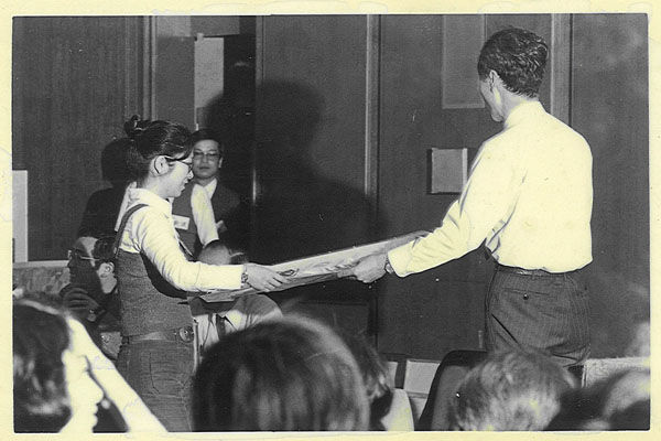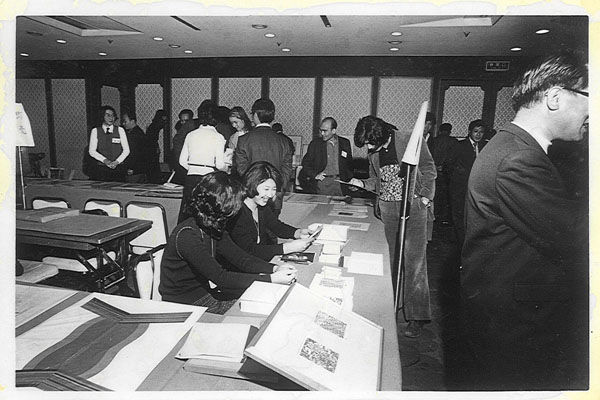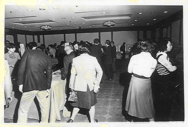 私が、時々おどろく程大きなカバンをさげて歩いているのを御覧になったことがございましたでしょう。あの中には今の日本では代表的な画家の版画がはいっていたのです。と申しますのは、私の先生が、美術の鑑賞は、ことばで説明してはいけない。本当に芸術性の高い作品にじかに接する機会を与えることだと教えられたことを忠実に守って、いつでも誰でもそれを見たい人があったら展げて見せられるように常に持って歩いていたわけです。だから、皆さんには誰よりも見ていただきたい気持ちは、やまやまでしたけれども、さすがに教師の身分を利用して絵を売るように思われることに気おくれしてお見せすることができませんでした。ところが、このたび毎日新聞の方が、私が二十年間続けてきたこの運動を高く評価して一緒に協力してくれることになり同封のような立派なパンフレットを作ってくれました。又五百円の会費でオークションの会場を提供してくれました。それでやっと私は自信をもって皆様に会員になり、オークションに参加して、親しくこれらの版画を見たり買ったりすることをおすすめできる次第です。