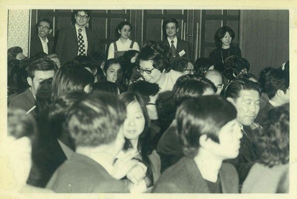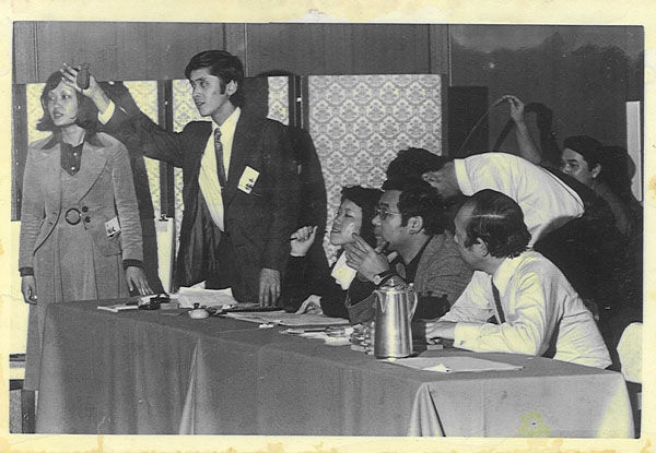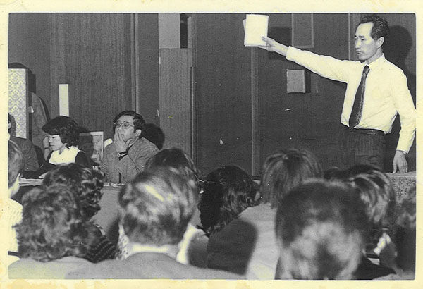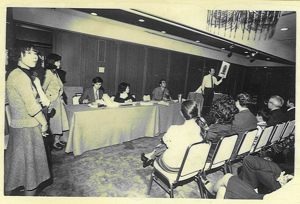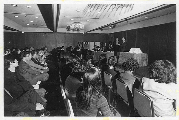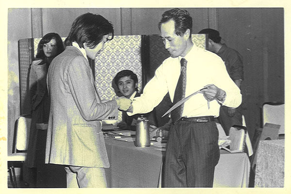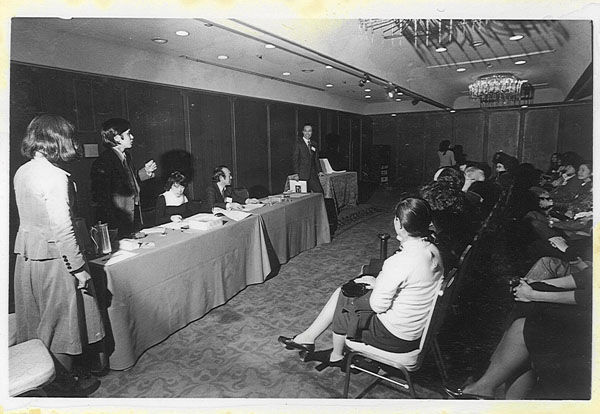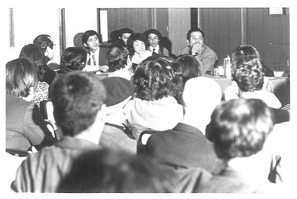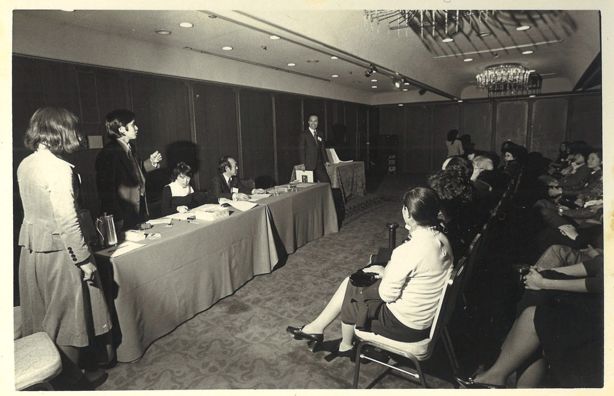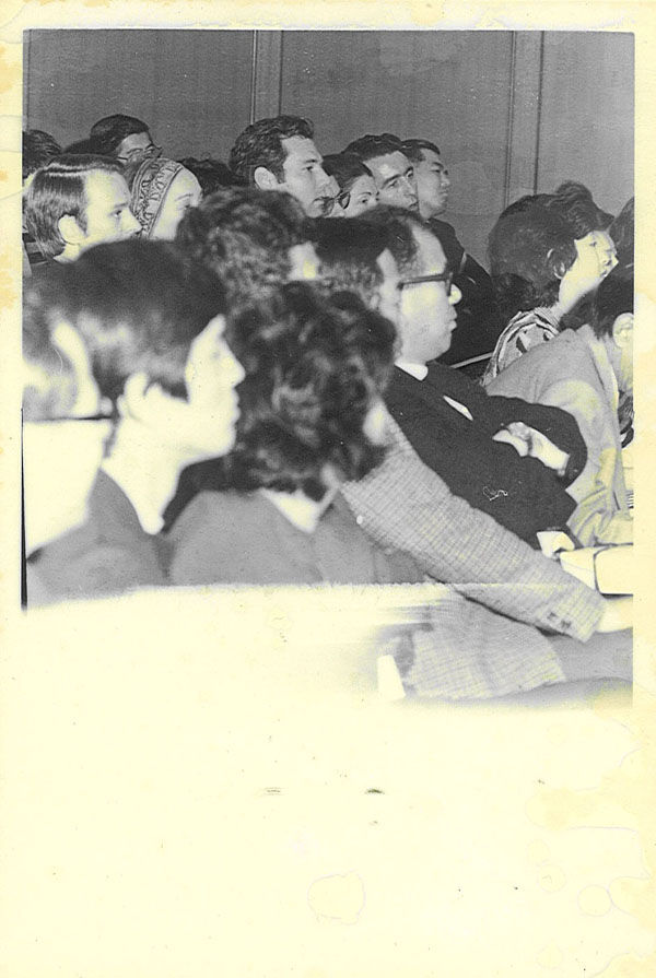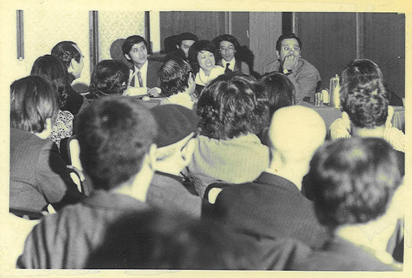 立っている左から、山本栄蔵、綿貫不二夫、金森敦子、渡部幹郎、高杉