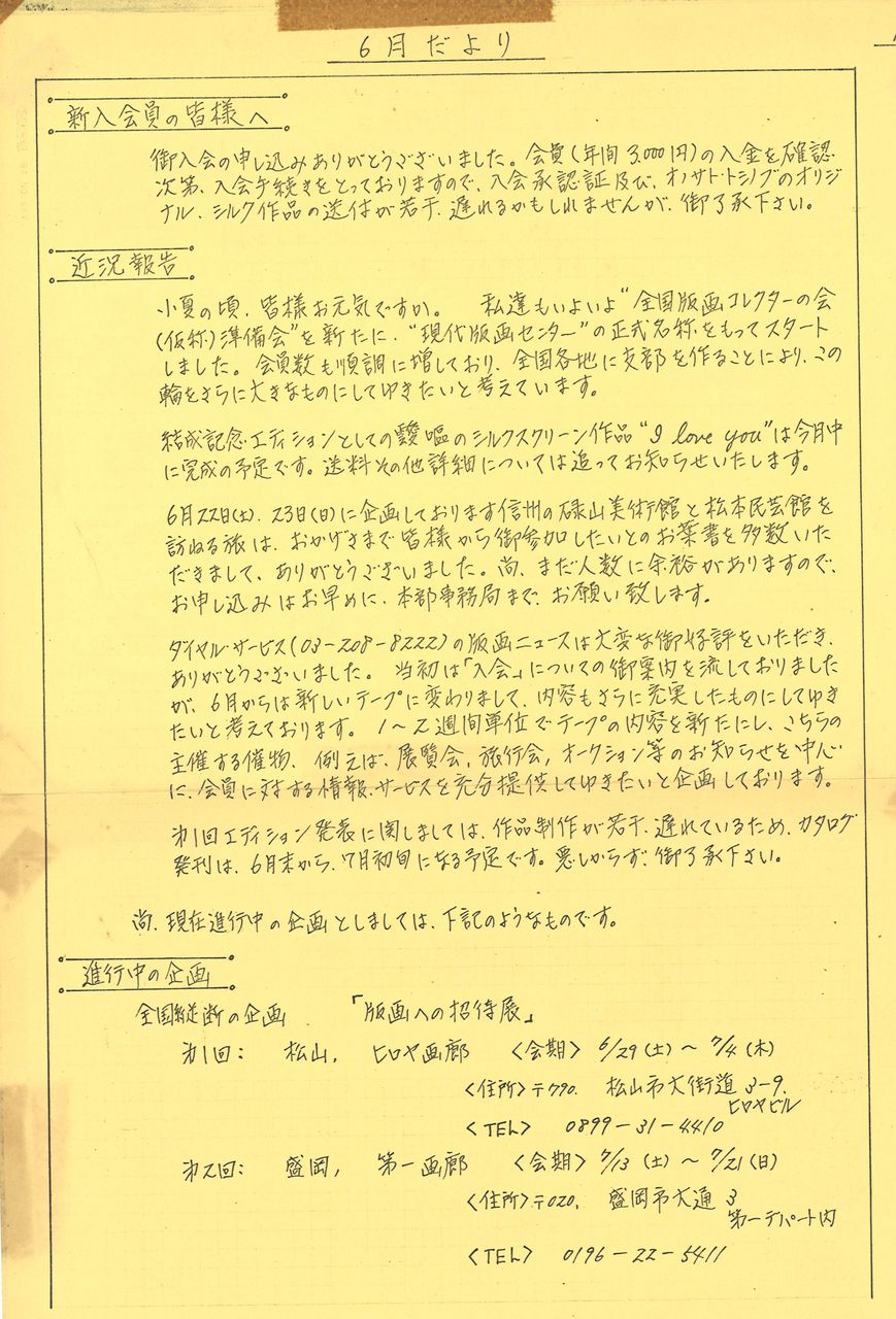 会員向けの「6月だより」は前月と同じB4サイズのコピー2枚(2頁)で発行された。