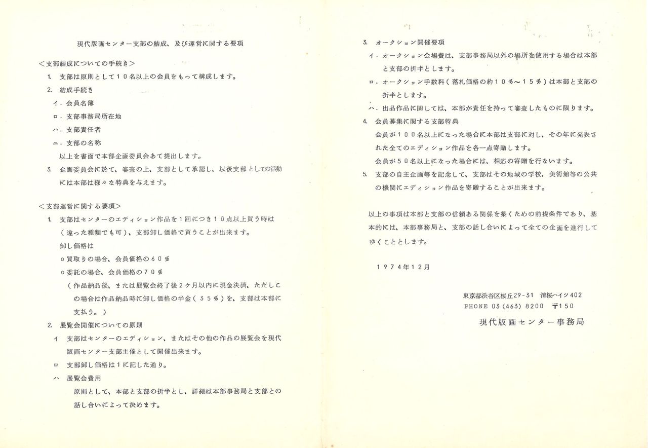 1974年5月に「現代版画センター」として正式に発足し、松山と盛岡から全国縦断「版画への招待展」を開催しながら、全国に支部網を築いていった。
