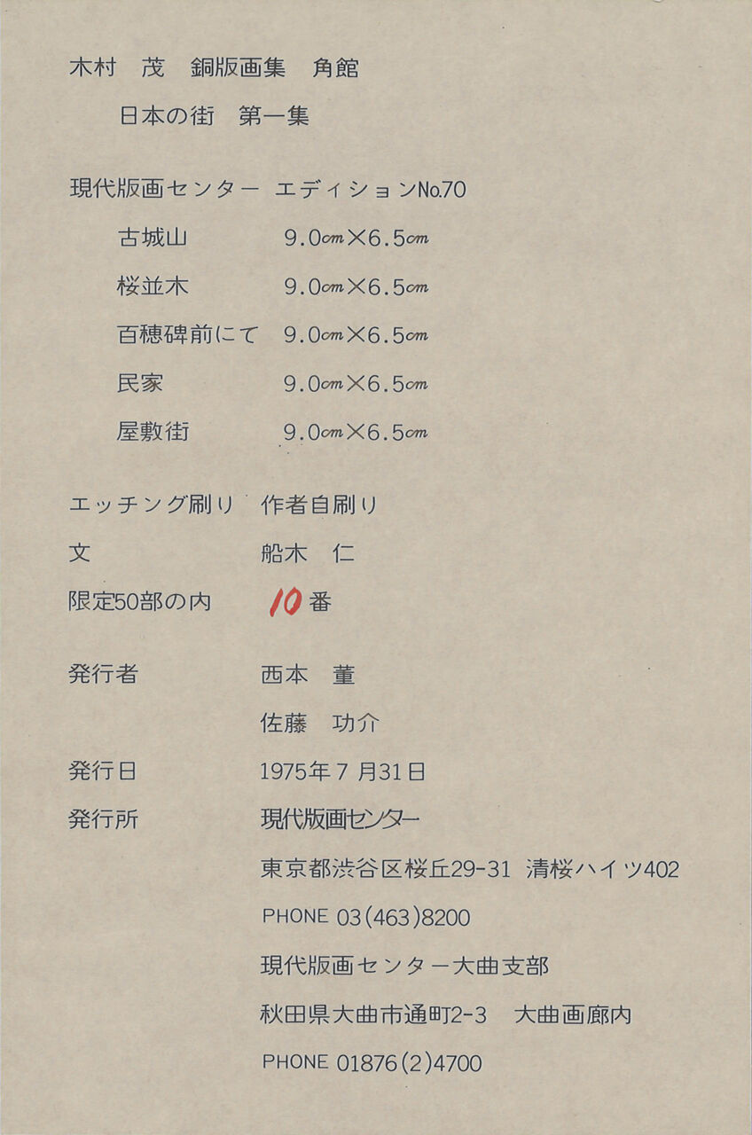 発行:現代版画センターと秋田県大曲画廊(佐藤功介)との共同エディション