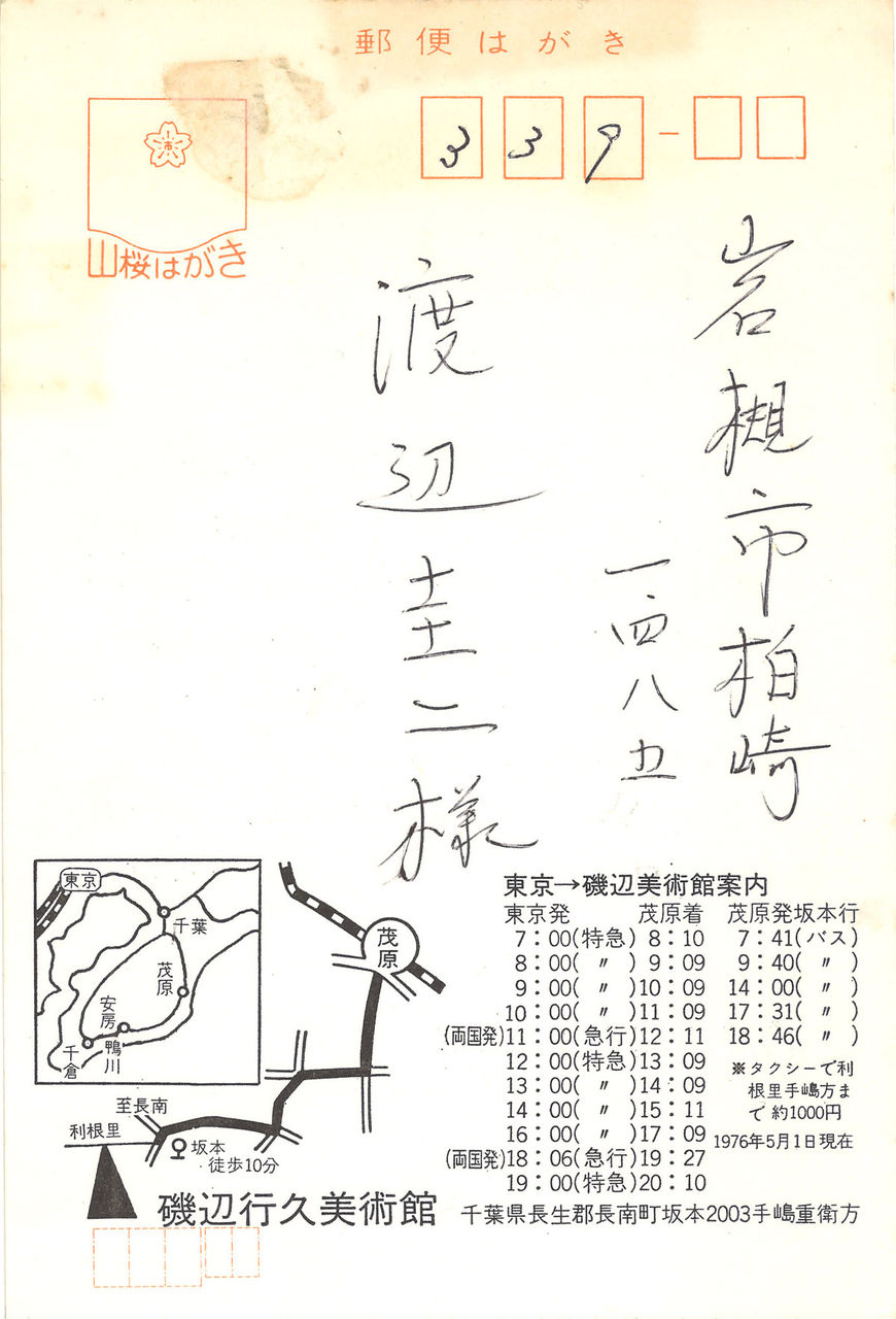 1976.5.30 現代版画センターの記録 「磯辺行久美術館 開館記念オープニング」千葉県長南町 「磯辺行久美術館」開館記念オープニング とき:1976年5月30日 ところ:磯辺行久美術館 千葉県長生郡長南町坂本2003 手嶋重衛方 会費:2000円 主催:磯辺行久美術館 連絡先:現代版画センター(事務局長・尾崎正教)