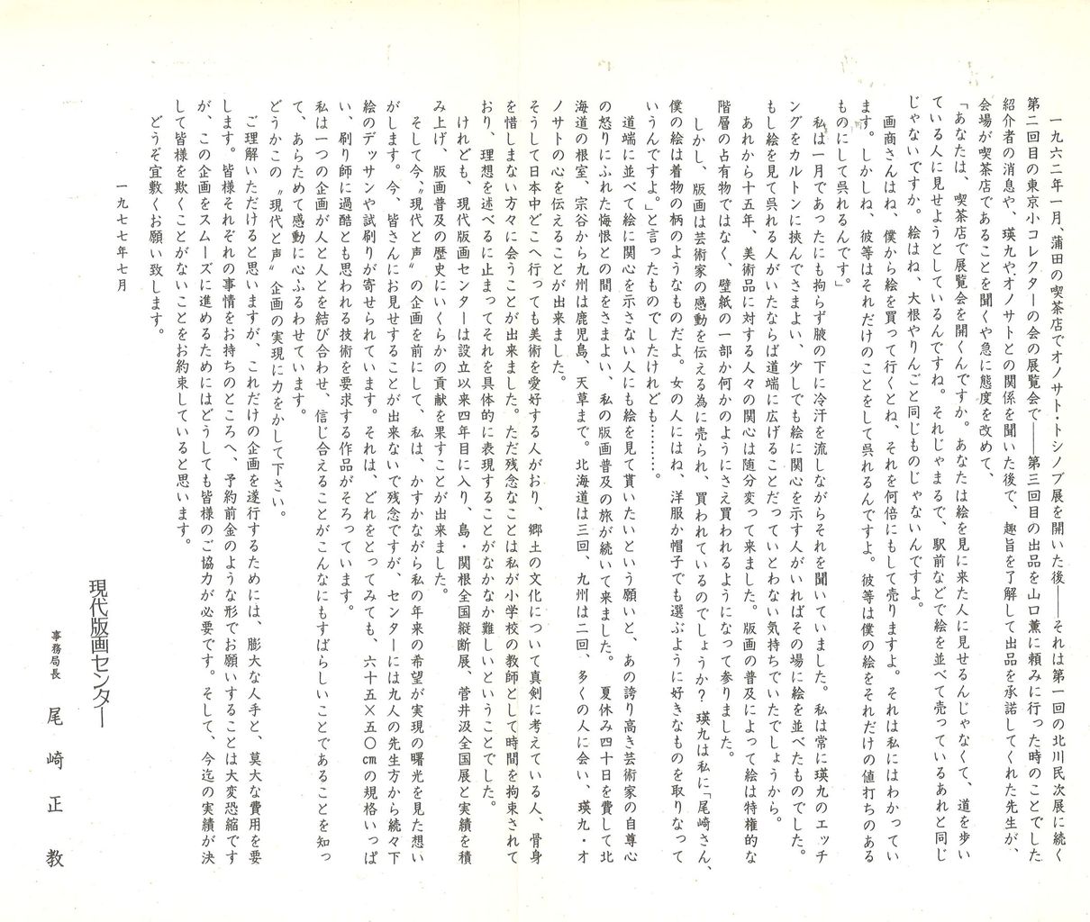 けれども、現代版画センターは設立以来四年目に入り、島・関根全国縦断展、菅井汲全国展と実績を積み上げ、版画普及の歴史にいくらかの貢献を果すことが出来ました。
