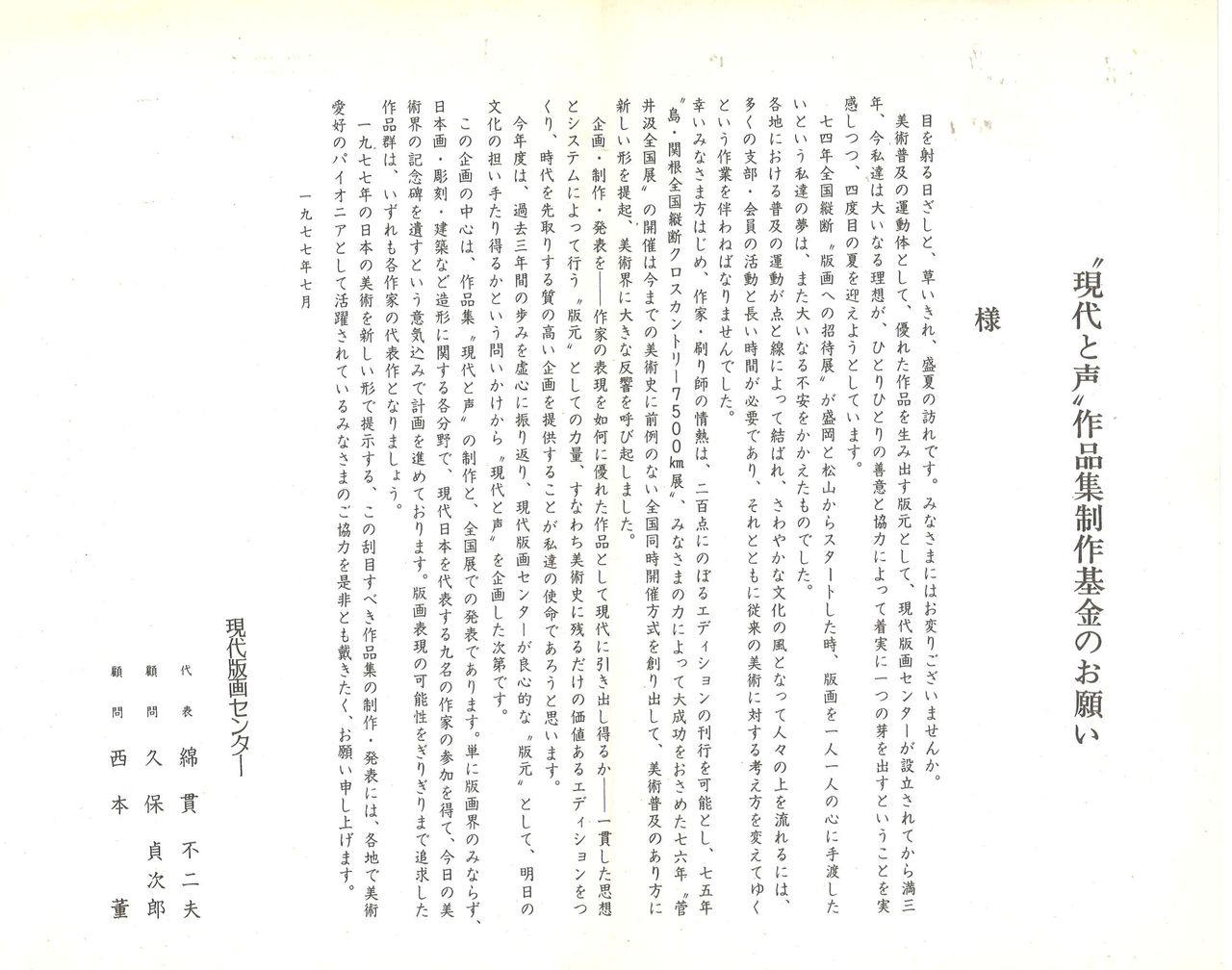 どうかこの〝現代と声〟企画の実現に力をかして下さい。