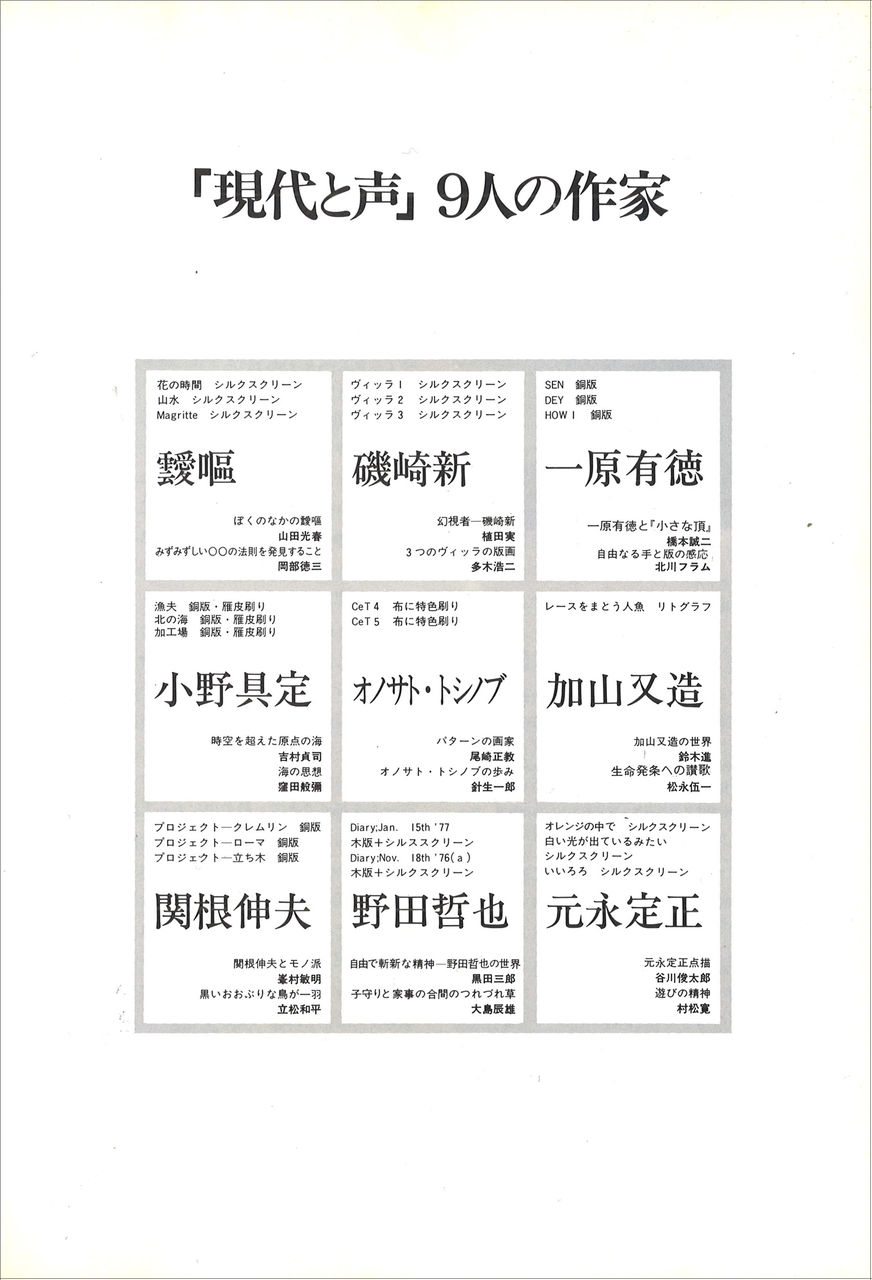 『'77現代と声 版画の現在』目次:
