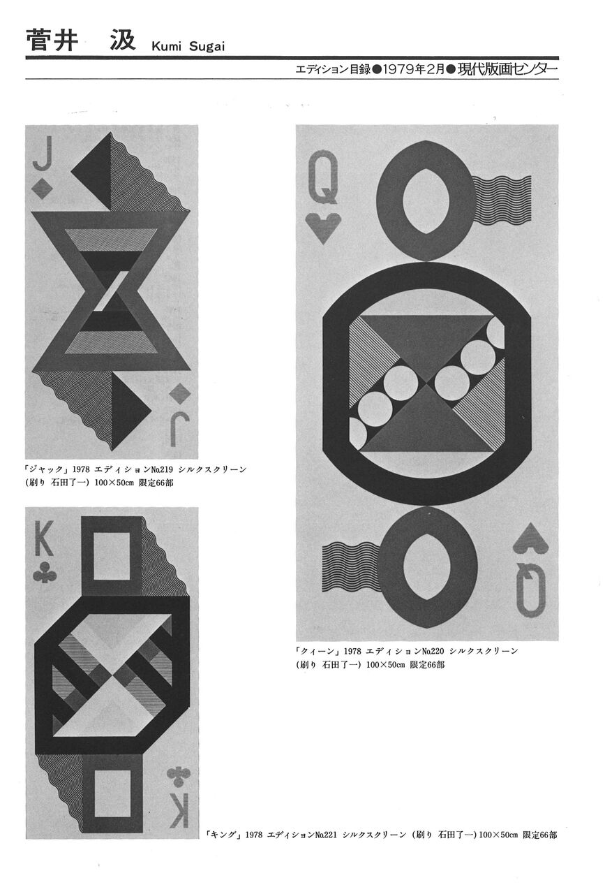 1979.2.1 現代版画センターの記録 菅井汲・トランプシリーズ「JACK」「QUEEN」「KING」 現代版画センターエディション 1979年2月現代版画センターから 菅井汲の新作エディション・トランプシリーズ3点を発表 「ジャック JACK」「クイーン QUEEN」「キング KING」 シルクスクリーン(刷り:石田了一)