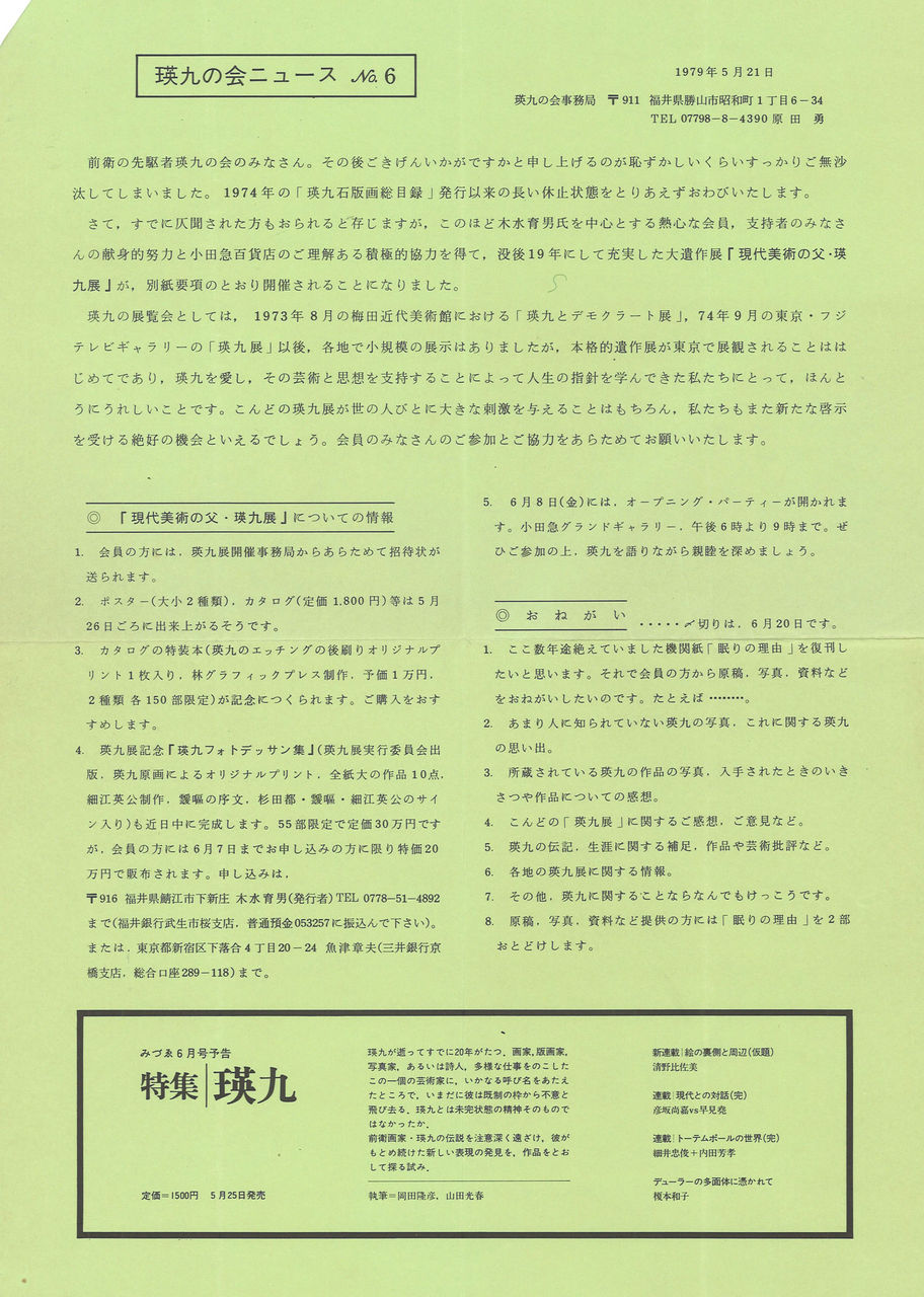 「瑛九の会ニュース No.6」1979年5月21日発行