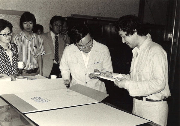 1979年6月5日_東大美博 (50)渡辺圭二さんが購入した磯崎新版画集「ヴィッラ」にサインする磯崎新先生