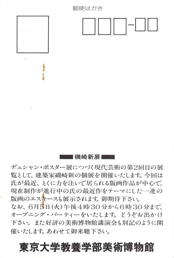 横山先生の尽力で、「マルセル・デュシャンのポスター展」に続いて「磯崎新展」が6月5日~7月6日に開催されました。