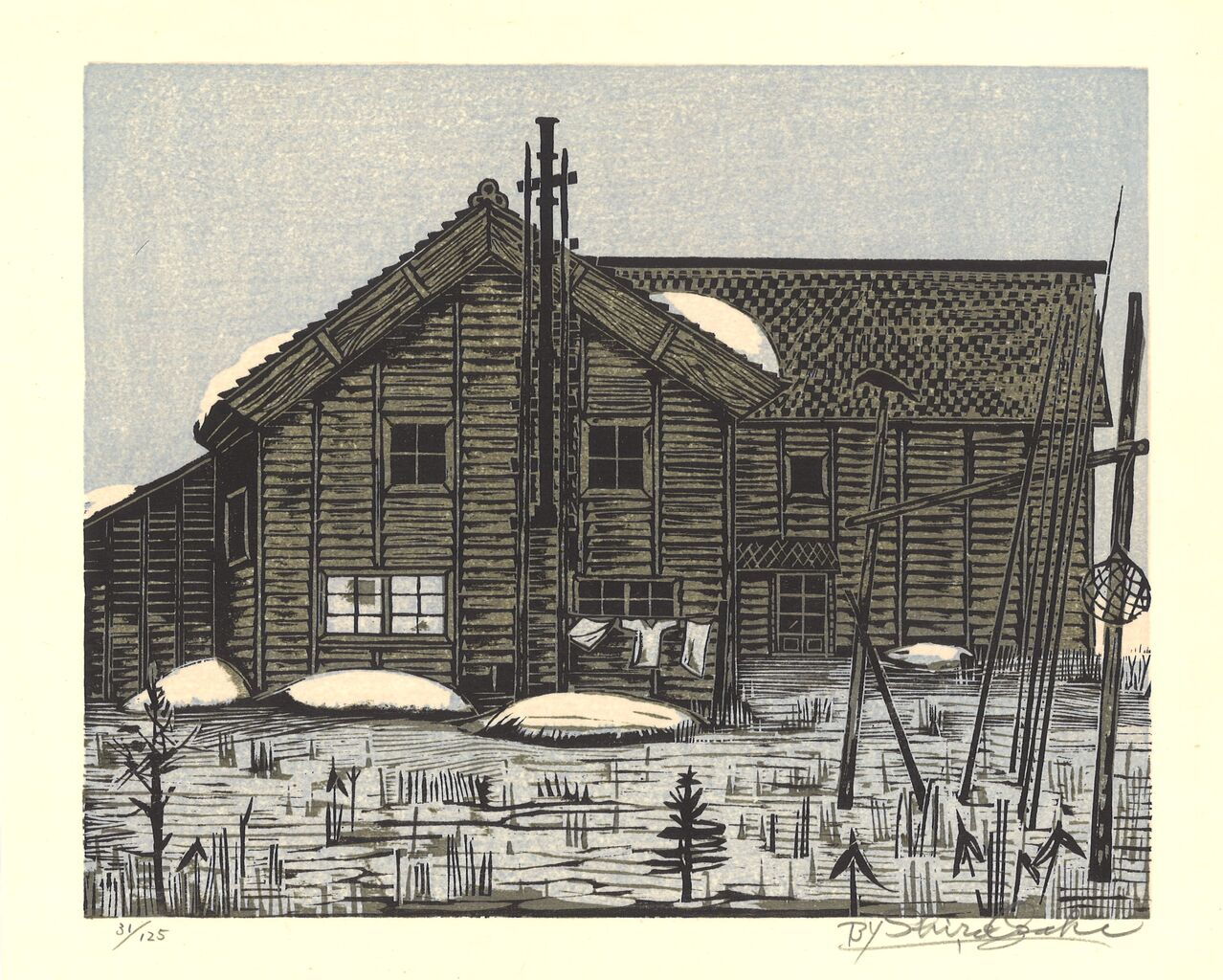 1980.6.1 新着作品・イベント情報 現代版画センターの記録 尾崎志郎木版画集「北国の家」 尾崎志郎 新作エディション発表 尾崎志郎木版画集「北国の家」 木版画4点セット (刷り:五所菊雄) 制作年:1980 現代版画センターエディション No.332 ~ 335 海辺の家 歌棄の魚家 石の倉庫 苫前の魚家 尾崎志郎 《北国の家》 1980年(刷り:五所菊雄) 木版画集 イメージサイズ:20.0×25.0㎝ シートサイズ:23.5×29.0㎝ Ed.125 サインあり
