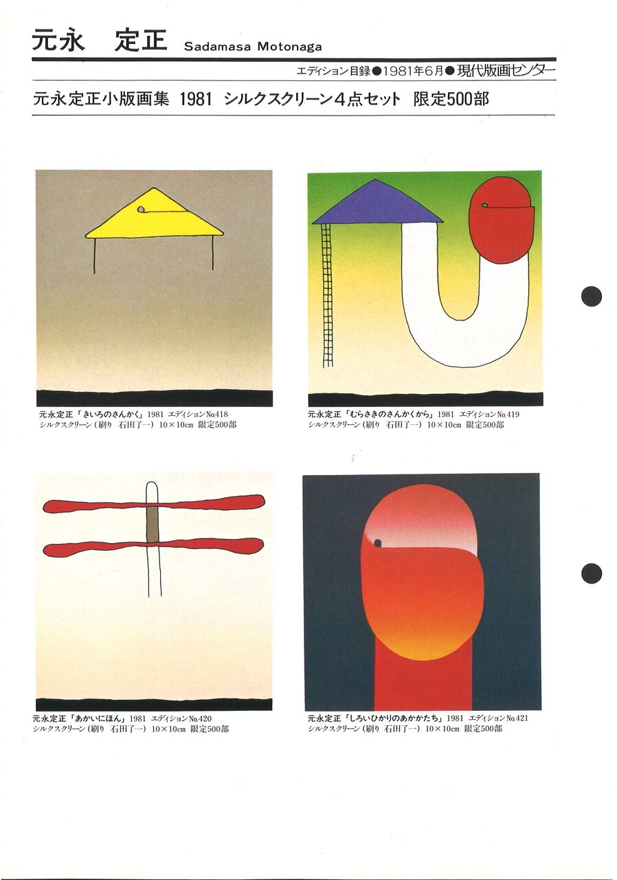 1981.6.1 元永定正と具体の作家たち 現代版画センターの記録 元永定正『小版画集1981』 現代版画センターエディション 元永定正『小版画集1981』 現代版画センターエディション 「きいろのさんかく」など4点