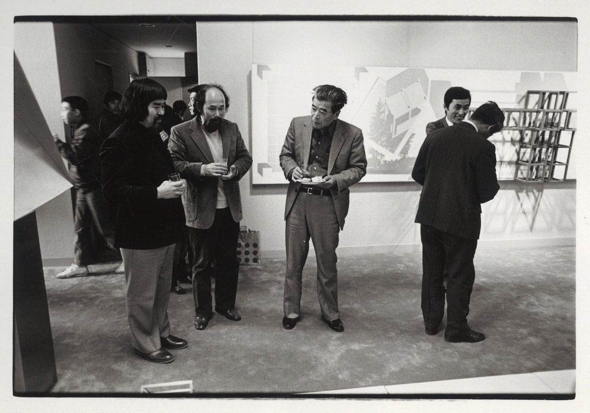 1982.1.24 磯崎新の版画 現代版画センターの記録 奈良・西田画廊開廊記念「堀内正和・磯崎新展」オープニング 西田画廊開廊記念「堀内正和・磯崎新展」オープニング 1982年1月24日 場所:奈良市・西田画廊 挨拶する堀内正和先生、その右が西田考作さん、綿貫不二夫
