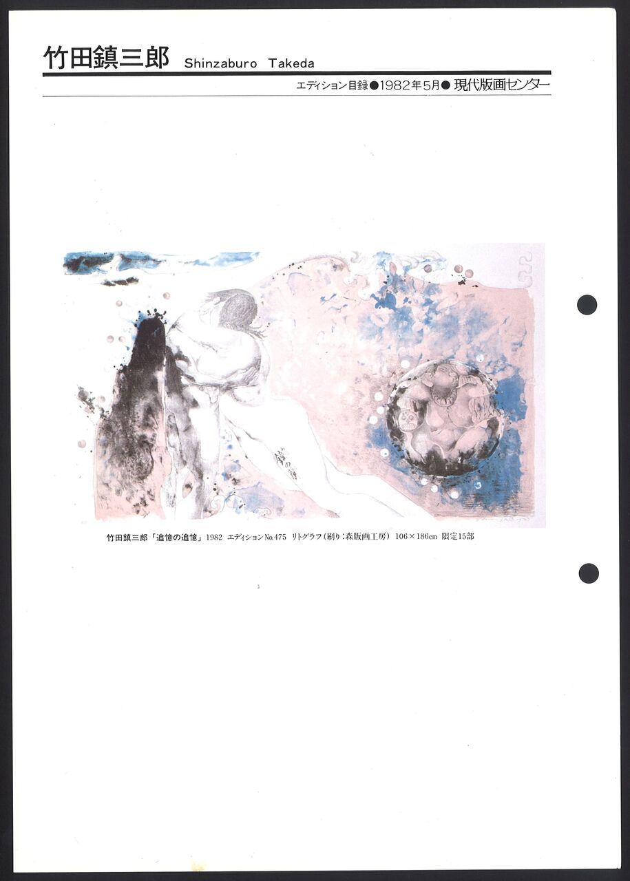 1982.5.1 新着作品・イベント情報 現代版画センターの記録 竹田鎮三郎「追憶の追憶」現代版画センターエディション 竹田鎮三郎 新作エディション発表 「追憶の追憶」 ・リトグラフ(刷り:森版画工房 森仁志) ・制作年:1982年 現代版画センターエディション No.475