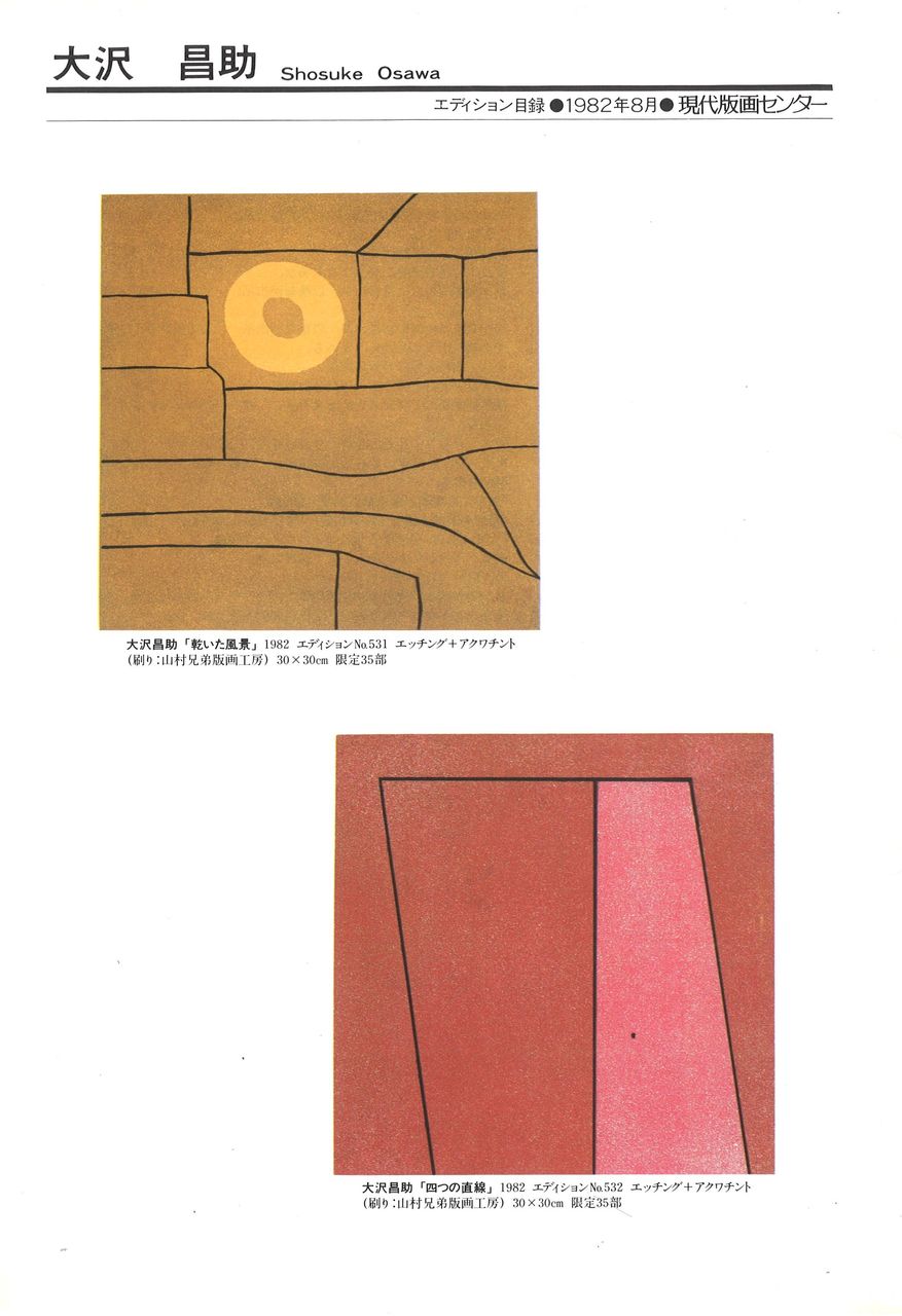 1982.8.1 現代版画センターの記録 大沢昌助 「乾いた風景」「四つの直線」 大沢昌助 「乾いた風景」「四つの直線」 1982年 銅版(刷り:山村兄弟版画工房 山村常夫・山村素夫) 現代版画センターエディションNo.531、No.532