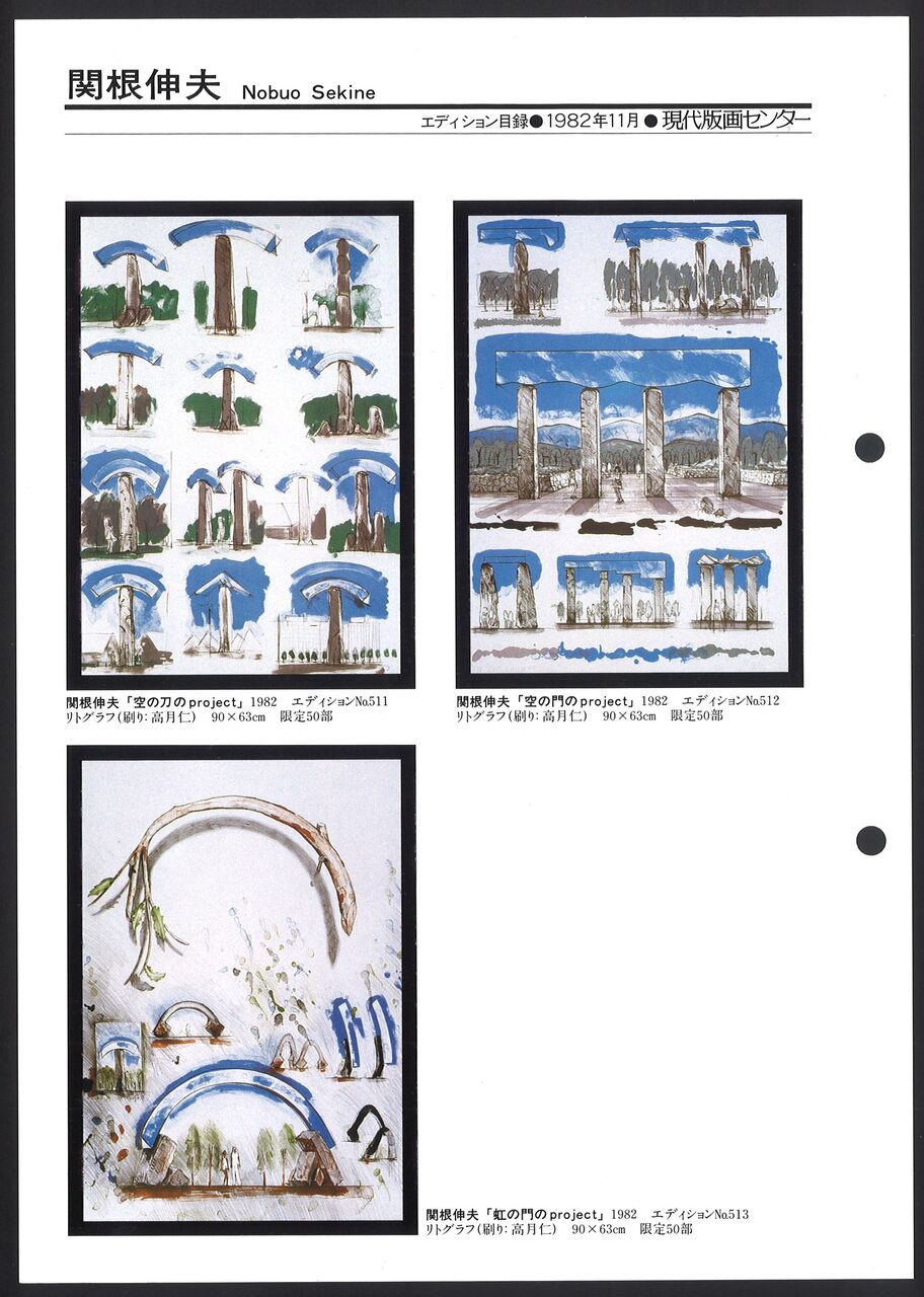 1982.11.1 関根伸夫と「もの派」 現代版画センターの記録 関根伸夫「空の刀のProject」「空の門のProject」「虹の門のProject」 関根伸夫 新作エディション発表 「空の刀のProject」 「空の門のProject」 「虹の門のProject」 ・リトグラフ(刷り:高月仁) ・制作年:1982 現代版画センターエディション No.511 ~ 513