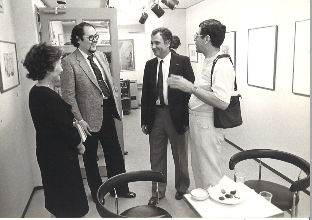 1983年4月26日 左から、柳田冨美子(緑陰小舎)、綿貫不二夫、ジャン・ベルト・バンニ、ガストン・プチ(ドミニコ教会神父、アトリエ・プチ主宰)