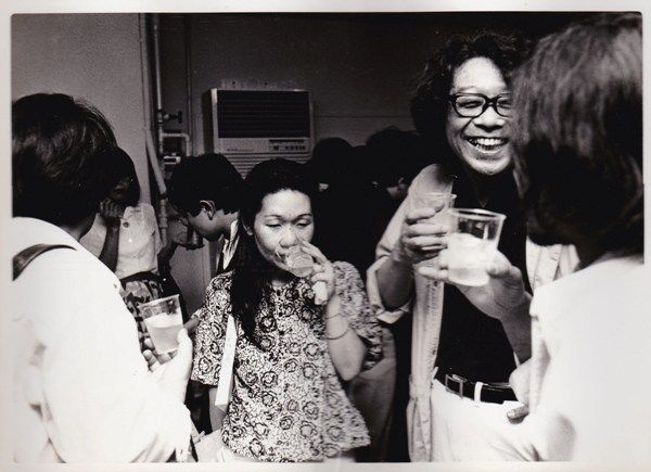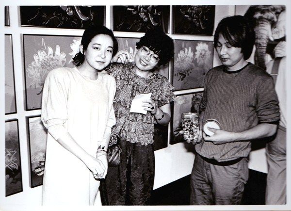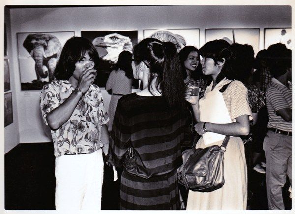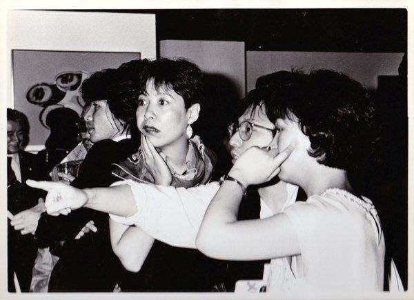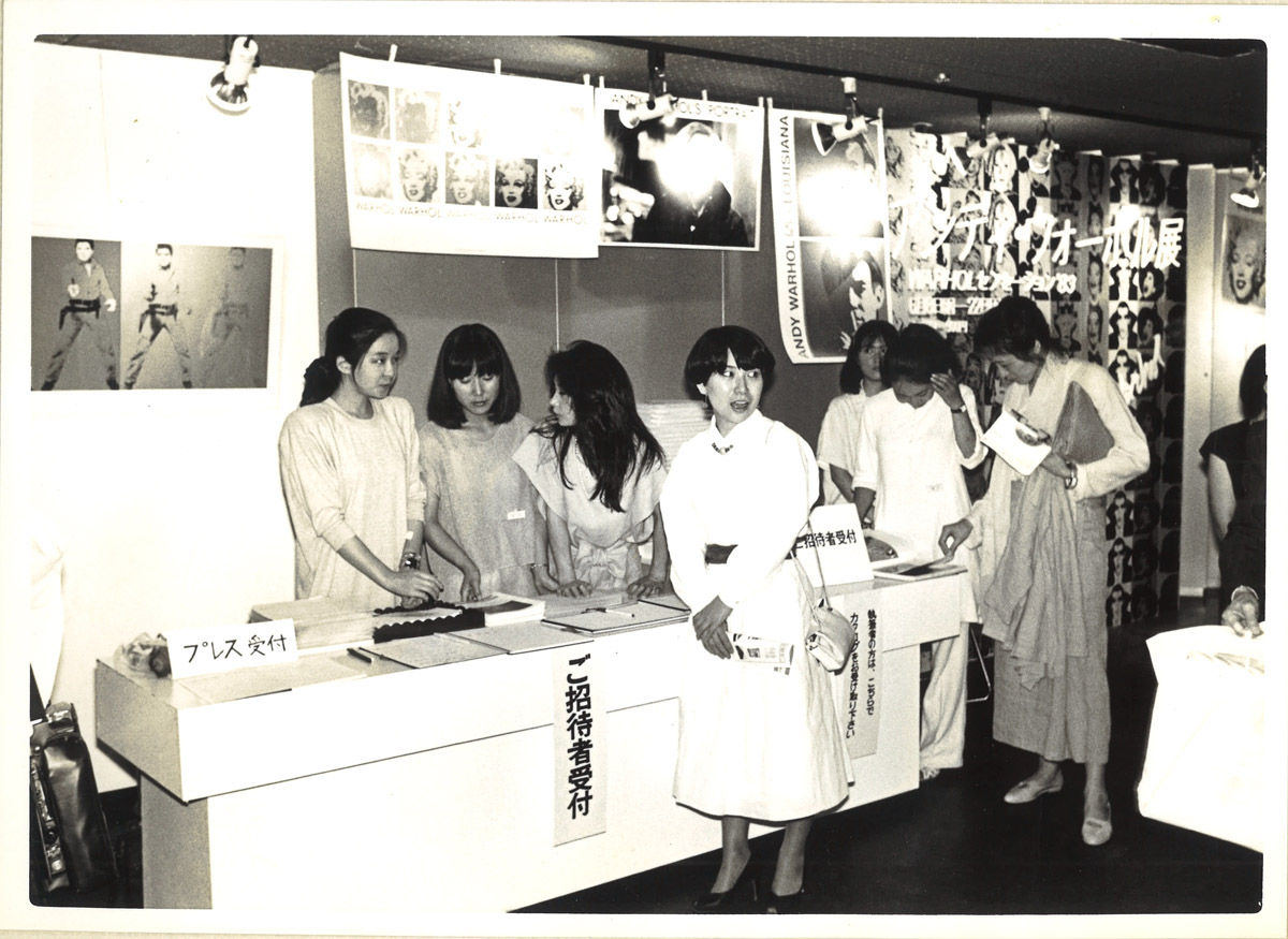 19830607アンディ・ウォーホル展_00002受付の現代版画センタースタッフ。左から五十嵐恵子、田村洋子、広瀬陽子、前川美知子