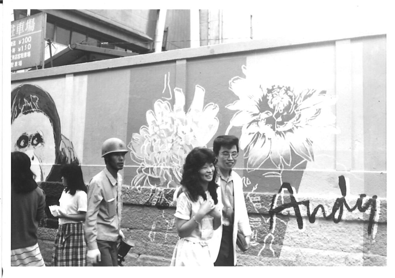 パルコに行く通りの壁にはウォーホルの「KIKU」他がプリントされた