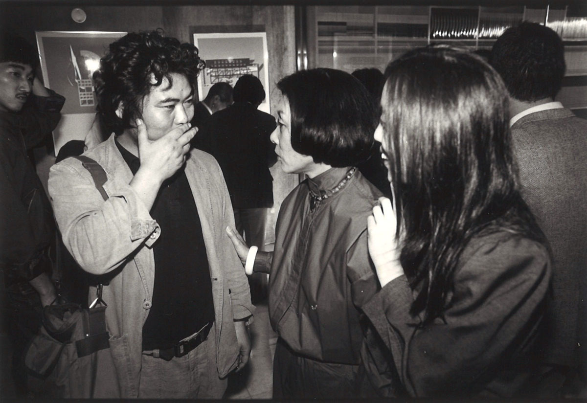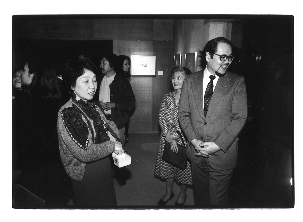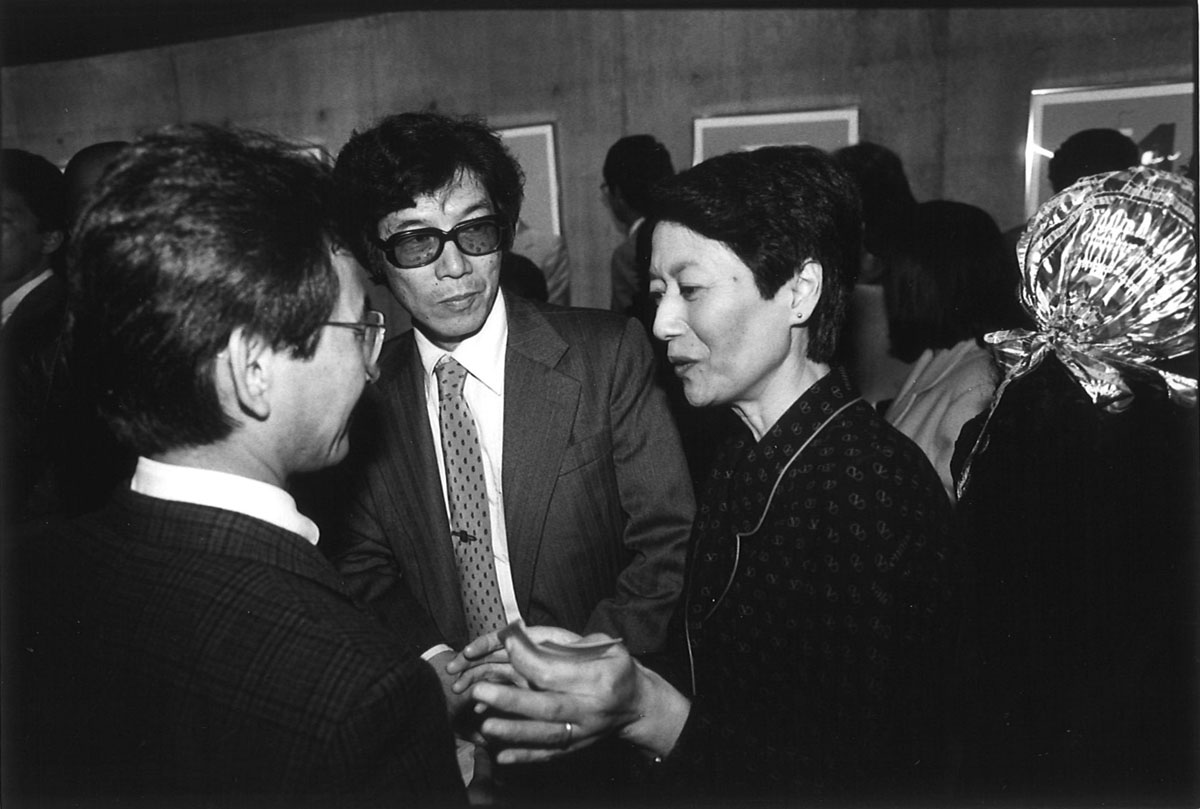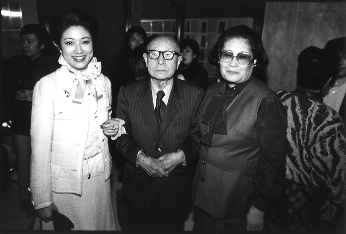 左から磯崎新先生、宮脇愛子先生、後ろで玄関番をしているのが綿貫不二夫