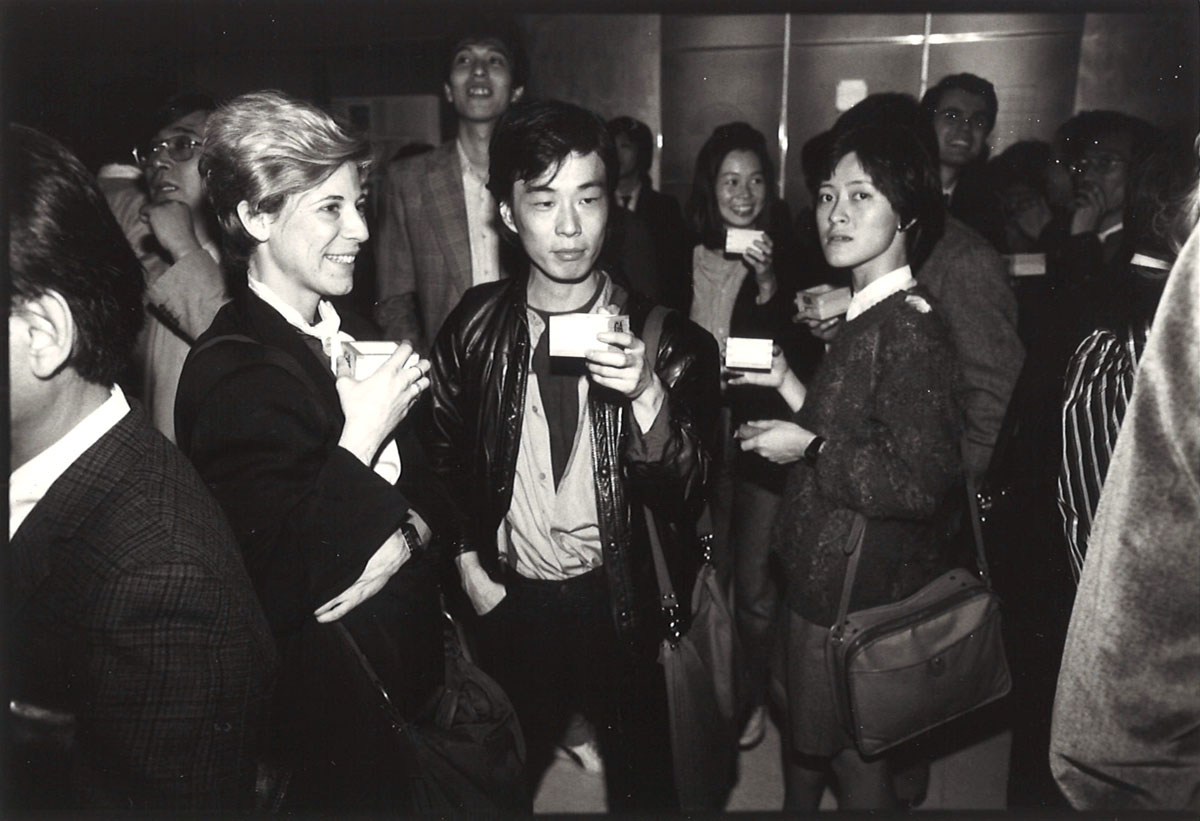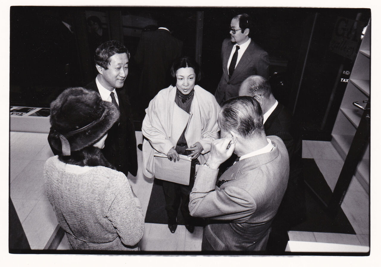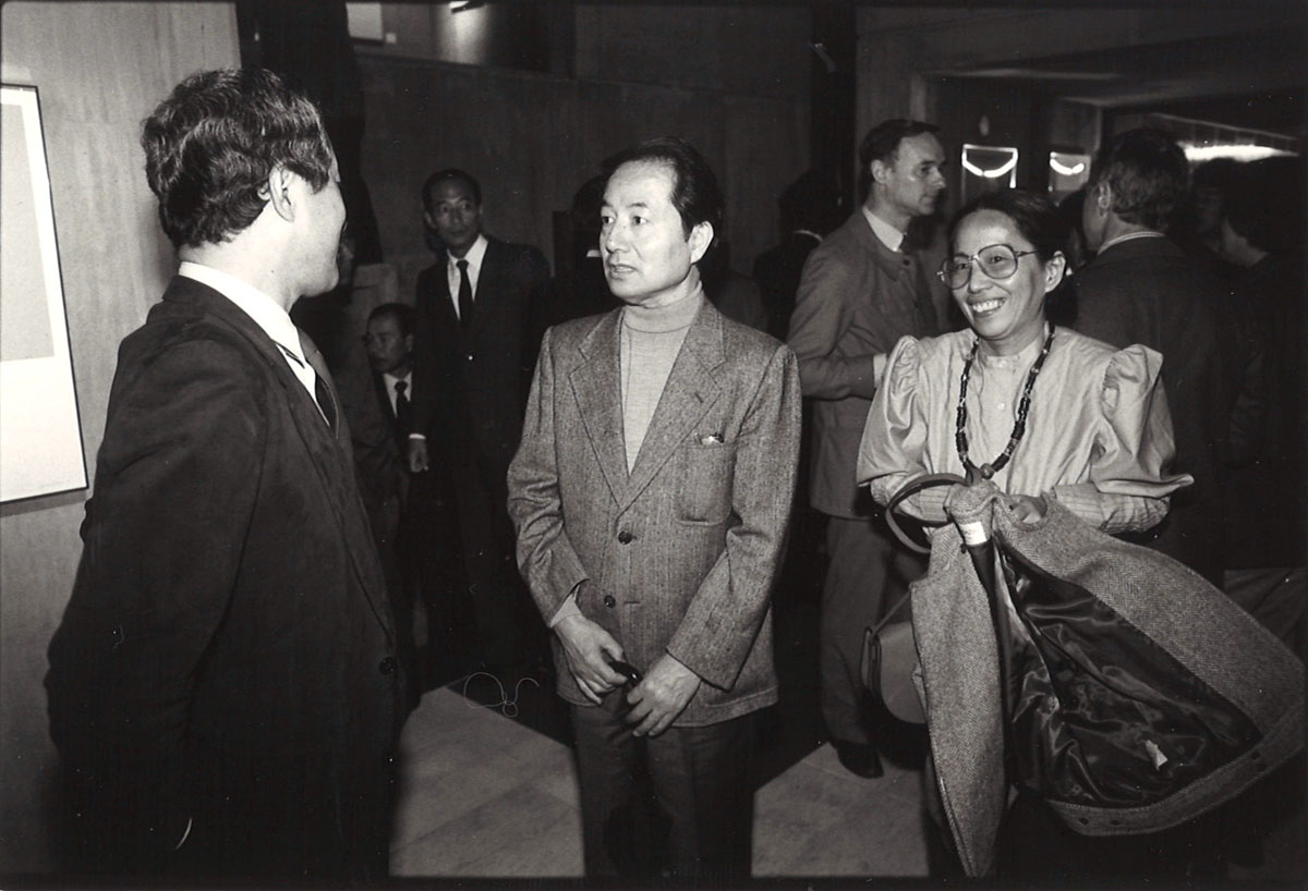 左から磯崎新先生、宮脇愛子先生、後ろで玄関番をしているのが綿貫不二夫