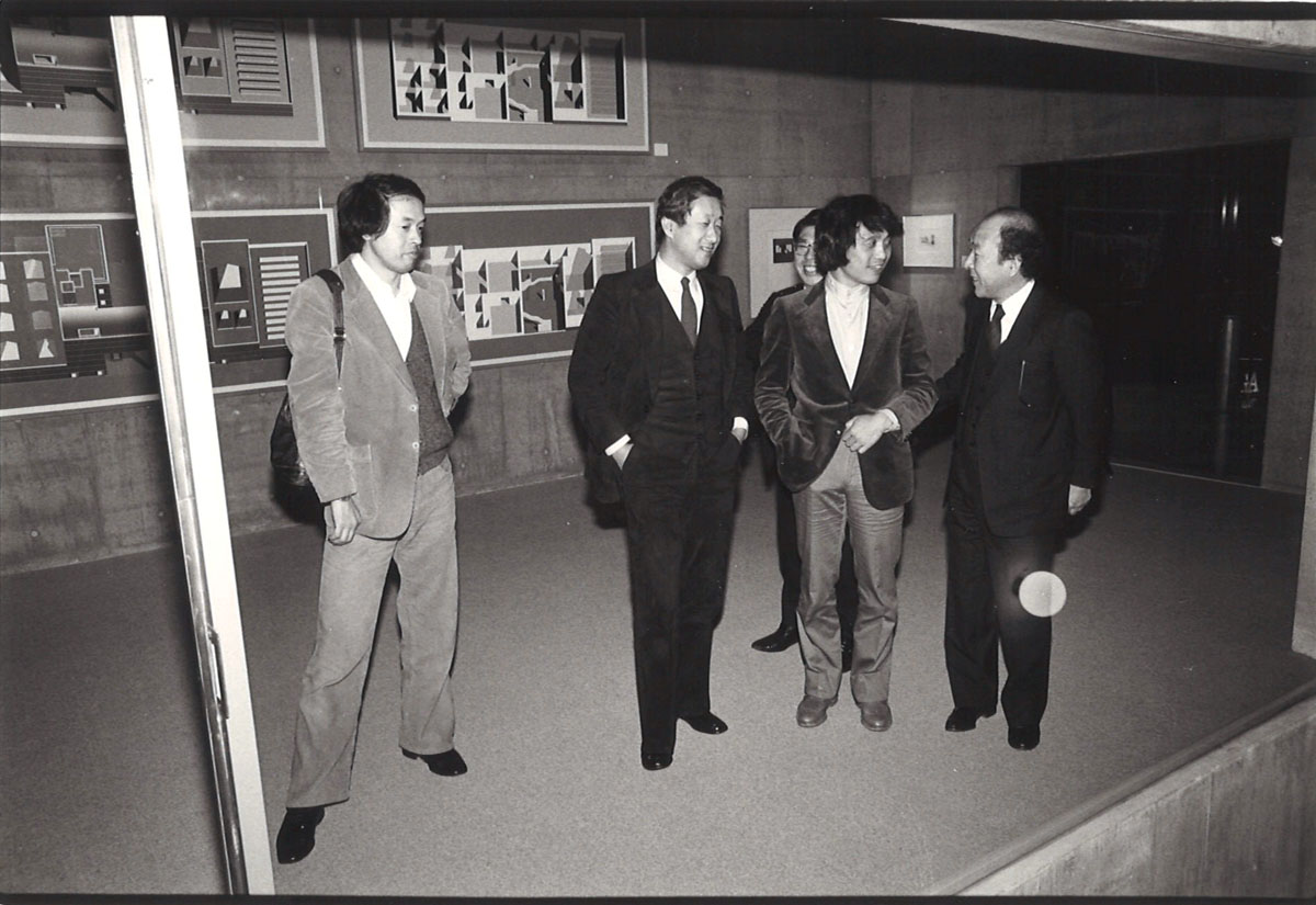 左から高橋さん(版画芸術編集者)、磯崎新先生、一人おいて安藤忠雄先生、二川幸夫さん(GAオーナー)