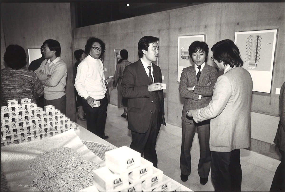 最初から2分50秒あたりまでは1983年11月のGAギャラリーの開館記念・磯崎新展の様子です。その後のインタビューは赤坂の磯崎新アトリエで行われました。