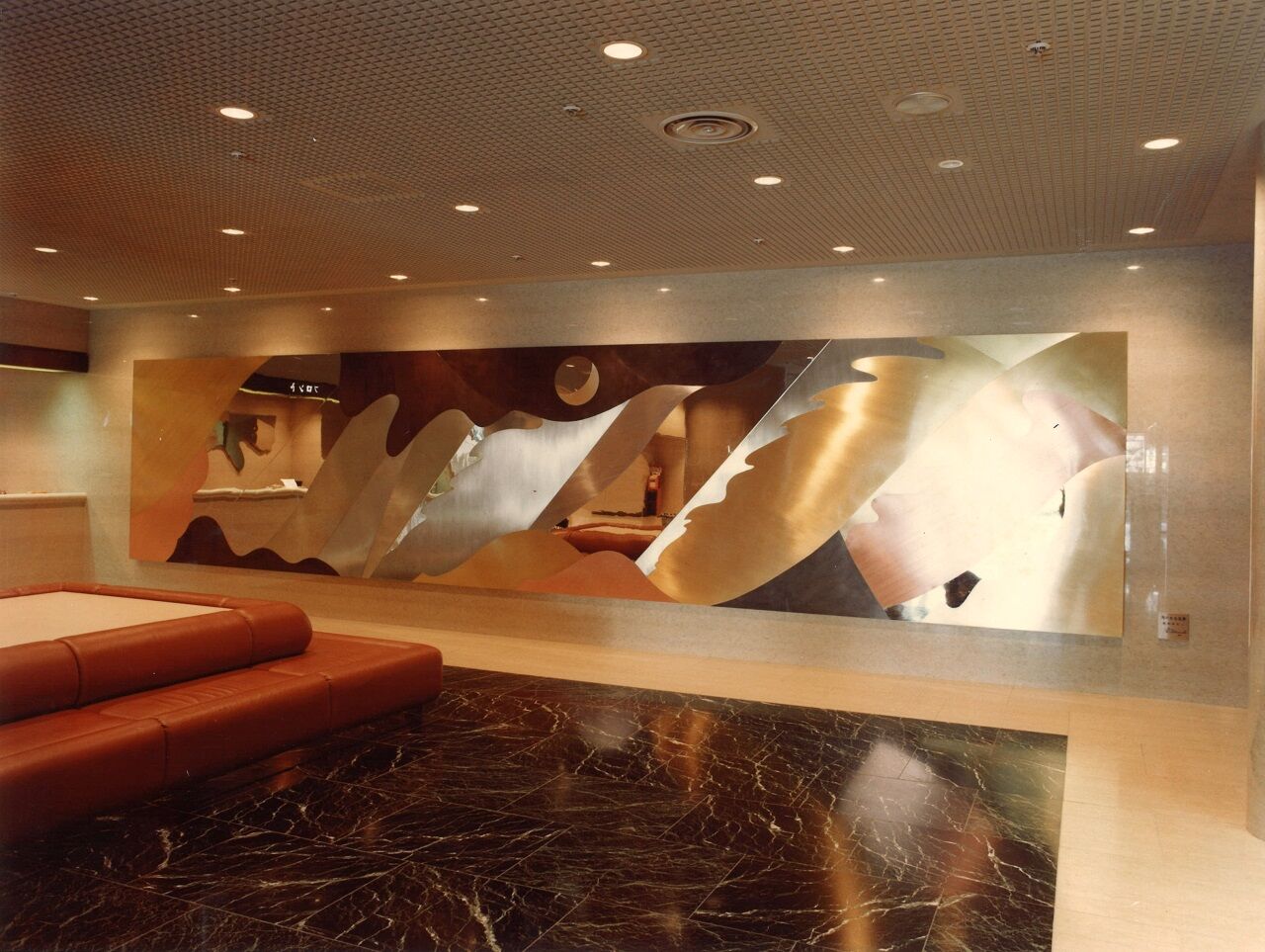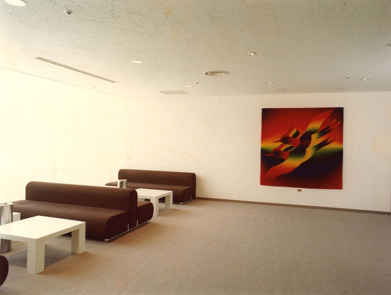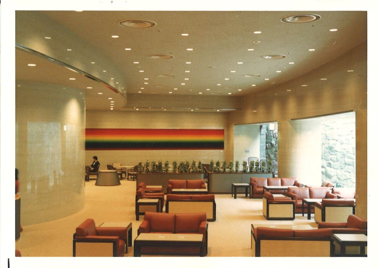 19840309虎ノ門パストラル竣工_00003広いラウンジには靉嘔の長大なタペストリー