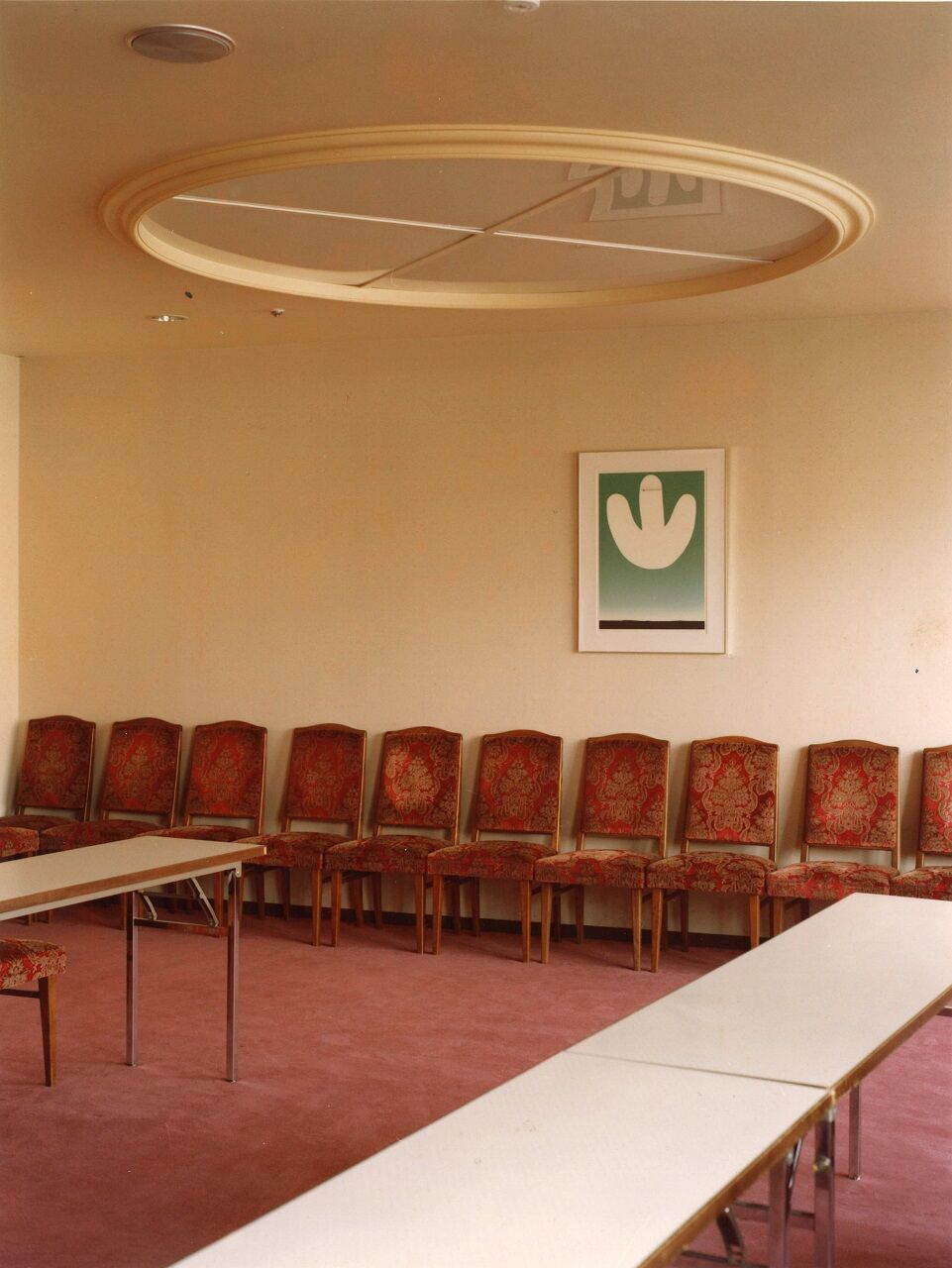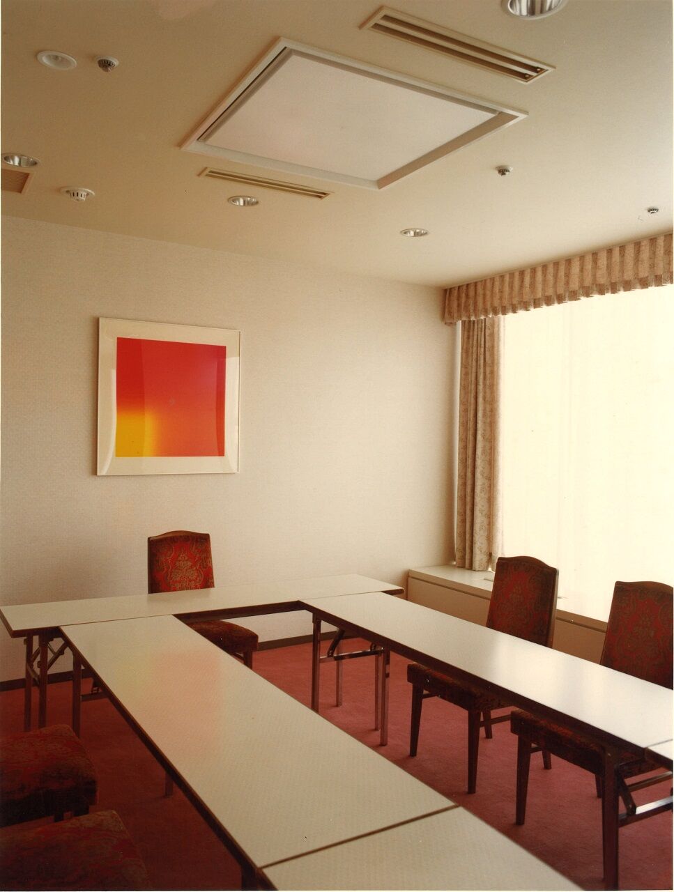 19840309虎ノ門パストラル竣工_00002会議室には元永定正のノーベル賞シリーズ(シルクスクリーン)