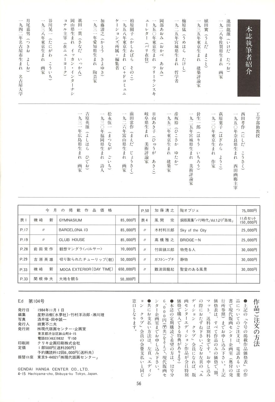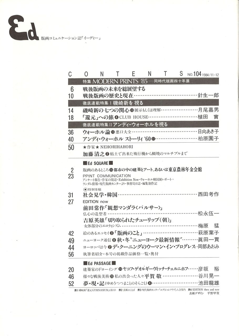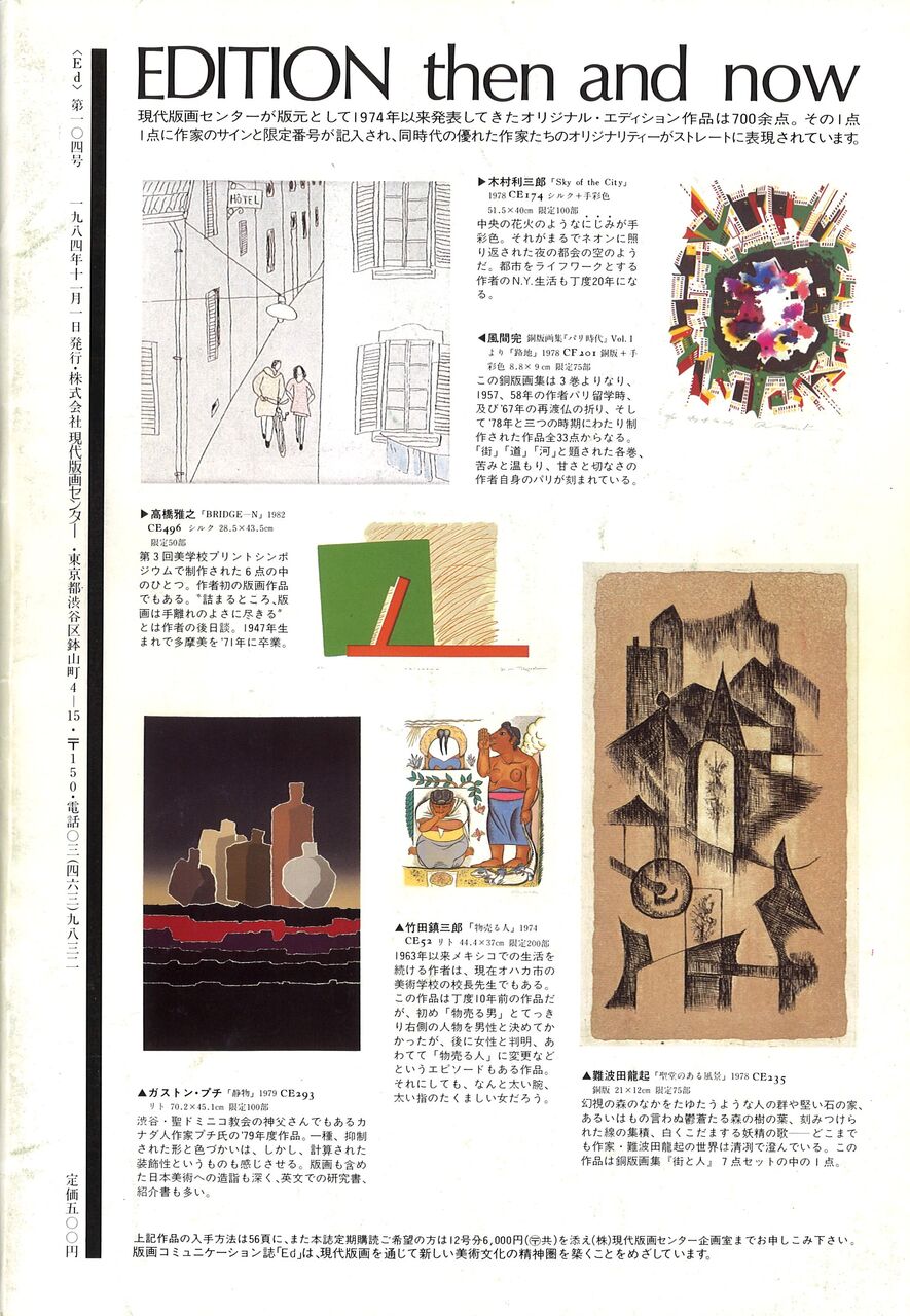 1984.11.1 現代版画センターの記録 版画センターニュース No.104 版画コミュニケーション誌「イーディー」 1984/11・12 No.104 現代版画センター機関誌 No.104 発行日:1984年11月1日