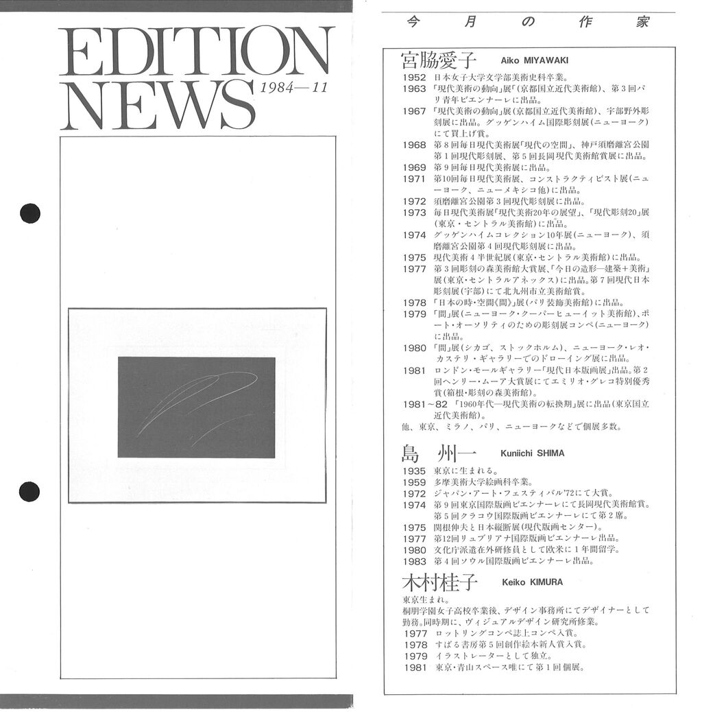 1984.11.1 現代版画センターの記録 現代版画センターEdition News 1984年11月号~宮脇愛子、木村桂子、島州一 現代版画センターEdition News 1984年11月号 新作エディション:宮脇愛子、木村桂子、島州一