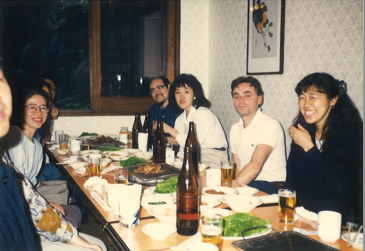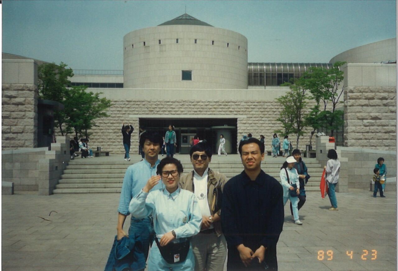 1989.4.23 画廊亭主の徒然なる日々 韓国ソウルを訪ねて 1989年4月23日 日本アドヴィザーの社員旅行 国立現代美術館にて 夜の会食、右から2人目が社長のピエール・ボードリさん、4人目が綿貫不二夫