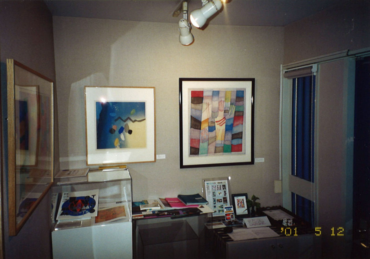 青山の一軒家時代、伝統木版にモダンな色彩感覚を吹き込み、アメリカ美術界に確固たる地位を築いた内間安瑆先生の一周忌の折、1960~80年代の木版画代表作、銅版、水 彩画など、20点を出品しました。