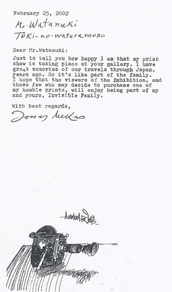 2002年2月25日付 NYのジョナス・メカスさんからのFAX