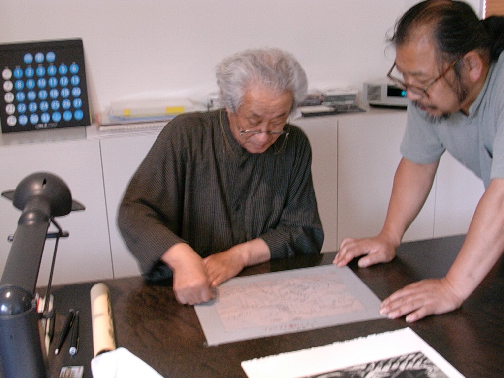 14時から、磯崎新連刊画文集「百二十の見えない都市」の未完成版画の原版に磯崎新先生が手を加える作業を行なうため、刷り師の白井さんと伺った。
