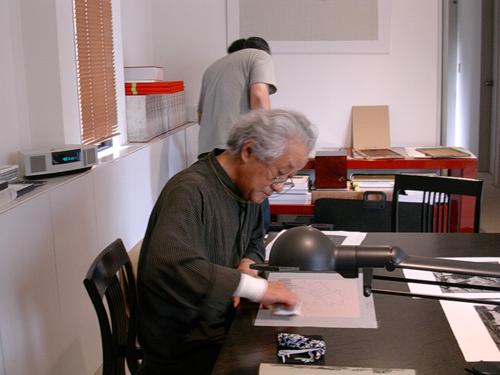 磯崎新邸 書斎にてソフトグランド銅版に手を加える