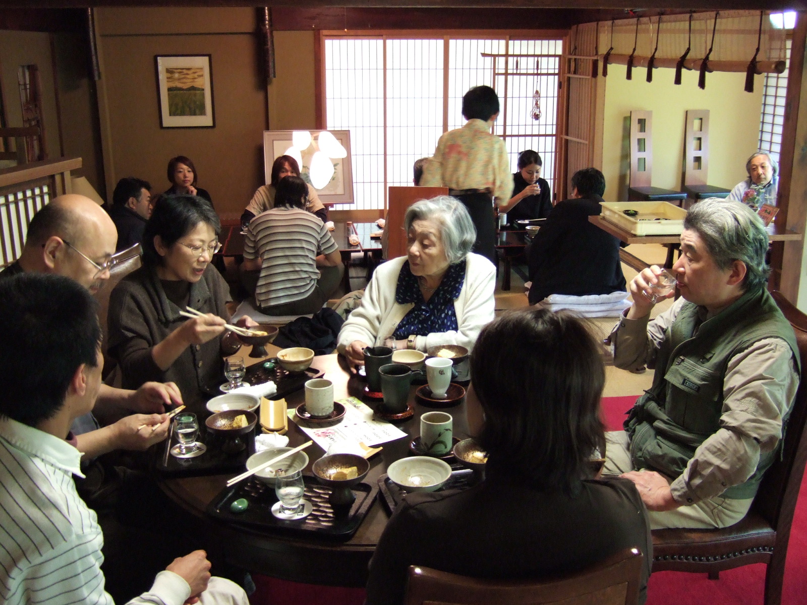 夕暮れの弘前を後に、秋田県にある日景温泉まで石場さんが送ってくれるとのことで、石田さんの車と2台で向かった。私は始終爆睡。一時間ほどで山奥の日景温泉に到着し、部屋は柳田さんとご一緒することになった。夕食にはきりたんぽがあった。初めて口にした。白ご飯は2杯お代りした。おなかが重たい。太ったかな~まぁこの3日間特別。部屋に戻りしばらく柳田さんとお喋りをした。一緒にお風呂へ向かい、乳白色の温泉に浸かった。お風呂上り、更衣室で柳田さんとまた話し込んだ。柳田さんは、女優さんみたいにとっても美人で、気品のあるおばあちゃま。憧れる。夜は綿貫さんの泊まる部屋にスッピンで登場し宴会に参加した。8月末に軽井沢出張で植田先生、石田さん、令子さんに見せているから平気。またここでちくと日本酒を戴き、就寝した。