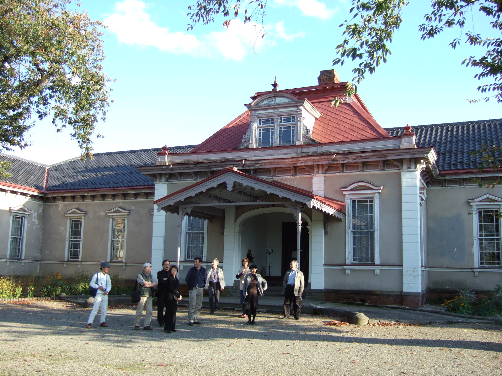 最初に上遠野建築事務所が設計したスペースデネガ(1983年)というギャラリーへ向かった。ギャラリーには地元の彫刻家・岩井康頼さんの力強い作品が展示されていた。丁度いいことに、スペースデネガを出たら、岩井さんに出くわした。そこで、岩井さんから作品の説明を受けた。終戦記念日などの祝日に下北半島に車を走らせ毎年同じ場所で廃材を拾って、それを作品にするという。なんと面白い発想。素敵!!と思った。2件目に毛網毅曠建築事務所の中三デパート(1995年)に向かった。昨日から見 てきた建築とは違い、未来的という印象。今さんの説明曰く毛網毅曠さんは風水が好きで、その風水を取り入れているらしい。10時からオープンだった為、裏口から屋上に入らせて戴いた。非公開でデパートの人で無い限り行けない場所だ。屋上からは弘前の町と岩木山が展望できる。桜島に似ているな・・・少しだけ帰りたいな・・・。次に前川國男の弘前市役所(1958年)に向かった。植田先生は、気に入ったみたいだった。来所される市民と受付の人の距離が近くて開放的。信頼感を持てそうな距離感だ。当初、前川國男がレストランを構想したという屋上へ上らせてもらった(普段は市民の方でも上がれない)。上から見下ろすと緑に囲まれて警察官がチャリに乗っていた。風情がある。旧藤田邸洋館(1921年)へ移動し、お茶をすることになった。テラスから見る洋館の内装はまるで貴族になった気分。私は、「こんがりカフェオレ」を注文した。キャラメルが焼きつけられたものだろうか・・・焦げている部分がほろ苦くてキャラメルが甘く、それが口の中で交差する。ここでは、広い庭園を皆で散歩した。池があったりお茶室があったり、とっても心地の良く穏やかな気持ちになる。誓願寺山門を潜り、早々に「そば割烹野の庵」旧正栄楼(江戸時代末期)でお蕎麦のコースを戴くことになっていた。春は桜が満開になり観光客で溢れるという川沿いを歩き、到着した。川は目の前、情緒溢れるお座敷で日本酒をちくと飲み、お蕎麦を啜った。ここのお蕎麦(津軽蕎麦)は大豆を繋ぎに使用しているという。ヘルシーで田舎臭くない風味と味が最高だ。お昼からご馳走を戴き、幸せ気分に浸った。昼食後は、弘前で三番目の鉄筋コンクリート造の越前屋漆商店店舗(1931年)にお邪魔した。非常に高い天井で、洋室のディテールは実に西洋的であった。いよいよ建築ツアーも終盤、前川國男の晩年の作品、弘前市斎場へ向かったが、葬儀中だったため控えめに見学をした。1泊2日の方との解散時刻も迫り、建築ツアーの最後は棟梁の神様・堀江佐吉の最後の作品といわれる、旧弘前偕行社に向かった。おっ、“最後”つながり、粋な計らいかな・・・。ここは、現在学校に使われている。映画の撮影にも使われたという。暖炉があり、広々としており、偉い人の部屋に入らせてもらった。西洋風の洋館はとにかくディテールが綺麗に施されている。それは、弘前の豊かな生活や環境を物語っているようにも思える。そして、日本的な建築は、間口が狭く奥に広く深い。箱のような塊建築は見当たらない。京都にある建物に近いものを感じる。現在も弘前に存在する西洋建築と日本建築どちらも、この伝統が朽ちてしまうまで守っていくべきだと思った。守ることがどれ程大変か、私には想像が付かないが、「春の桜、夏のねぷた祭り」だけとは言わせないほどの、豊かな建築文化を持っていると思う。ガンバレ弘前!!ガンバレ私!!