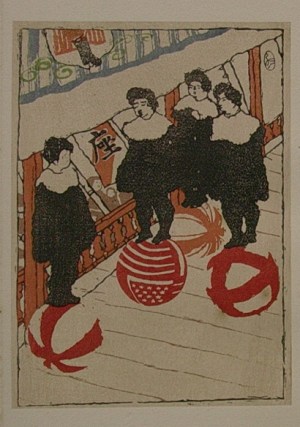 挿入作品 木版 「玉乗り」1点 他に版ごとに分解したものが5点