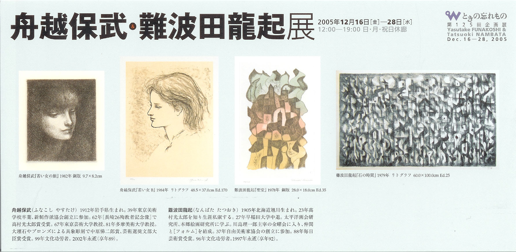 三浦さんと雄高さんは、明日から始まる舟越保武・難波田龍起展の展示作業を行なった。現代美術オークションの展示とは一転して、淡くて優しい作品が整然と展示された。14時にディスハウスの北澤さんが来廊され打ち合わせを行なった。綿貫さんからDMのサイズを変更したいという意見があり、展覧会に合わせ臨機応変にサイズを変えることに決まった。また、柳田冨美子さんが営んでいた緑蔭小舎の本はひとまずダミーを作成してからフォーマット等を決めることになったので、近いうちに私はデータを送ることになった。最後に、磯崎新連刊画文集『百二十の見えない都市』たとうの表題を北澤さんに3パターン作ってもらってから決めることになった。打ち合わせ終了後、さっそく緑蔭小舎の本のデータを作成する作業を行なった。彫刻家西常雄さんの執筆したものが200字の原稿用紙20枚をパソコンに打ち込み終わるまで帰らないと決め、黙々とやり終了した。
