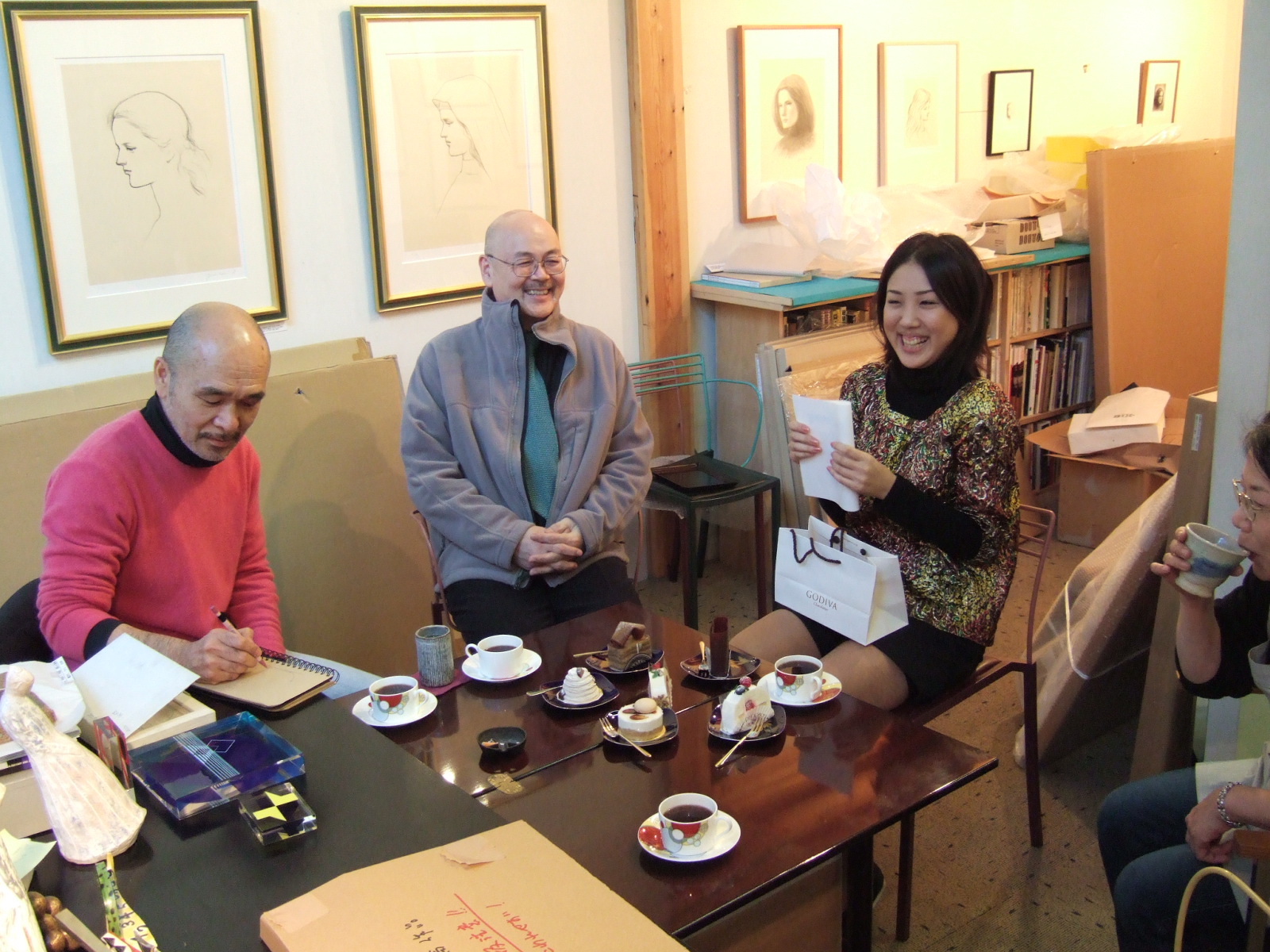 今日は私の23回目の誕生日。皆さんがケーキとコーヒーでお祝いしてくれた。私だけ、ケーキ2つ。皆さんからプレゼントまでもらっちゃって・・・本当にありがたいです。