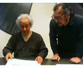 掲載した写真はつい先日、磯崎新先生との打ち合わせの折のスナップ、右は銅版とリトグラフの刷り師白井版画工房の白井四子男さんである。ときの忘れものの最大のプロジェクト、磯崎新連刊画文集《百二十の見えない都市》の最後の詰めを行なっている。
