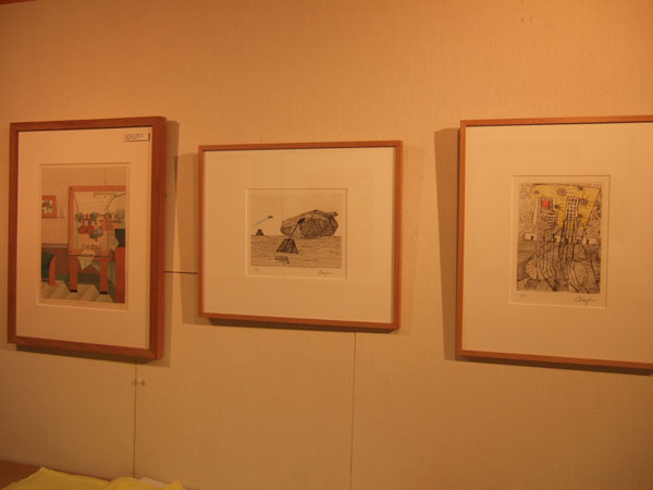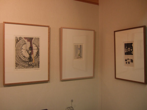 2006.6.21 ギャラリー新人日記 ギャラリー新人日記 6月21日 常設展 晴れた日に撮影したかったのですが、晴れる日を待っていると展示が変わってしまいそうなので、曇り空の本日撮影しました。 昨日、綿貫さんがトンカチを持ってせっせと常設展の展示をしていました。 <左写真>内間安王星、山口長男 <右写真>難波田龍起 <左写真左から>PAUL KLEE、マイケル・グレイヴス、<右写真、右から>石山修武、石山修武 <左写真左から>石山修武、磯崎新、駒井哲郎 <右写真、左から>草間彌生、森村泰昌 <右から>草間彌生、瑛九