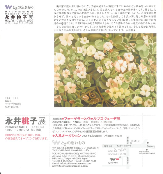 うつくしくあることが、目に見えるかたちのうつくしさではなくありかたそのもののうつくしさであることを永井桃子の作品は無言の内にしかし雄弁に指し示しているように見える。ギャラリーがどことなくしんとして、荘厳といえるような雰囲気をたたえていたことを思い起こす。次の個展が今から楽しみである。