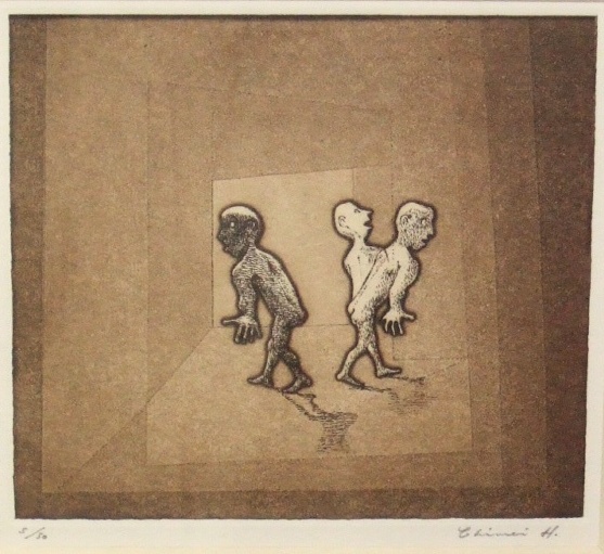 浜田知明(はまだ ちめい)は1917年(大正6年)熊本生まれ、旧姓・高田。1939年(昭和14年)東京美術学校油画科卒業し、同年応召。翌年に中国大陸に派遣された。20歳代の大半を軍隊で過ごした、典型的な戦中派である。戦地での不条理な体験が復員後の制作活動の出発点となる。「初年兵哀歌」連作により高い評価を獲得し、棟方志功、浜口陽三、駒井哲郎らと国際版画展に出品、1956年のルガノ国際版画ビエンナーレで受賞した。1979年にはウィーン(アルベルティーナ版画素描館)、1993年にはロンドン(大英博物館日本ギャラリー)で回顧展を開催している。