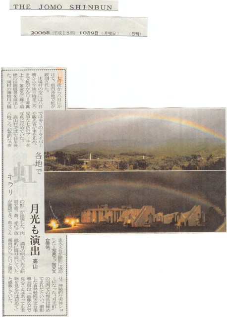先日、故郷の群馬に日帰りした折、いつものように駅の売店で地元の上毛新聞を買ったところ、そこに掲載されていたのが幻想的な虹の写真。
