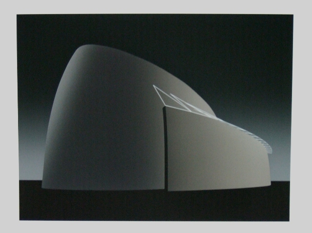 ついでにご紹介するのは、奈良の「なら100年会館」をモチーフにした磯崎新先生の版画です。