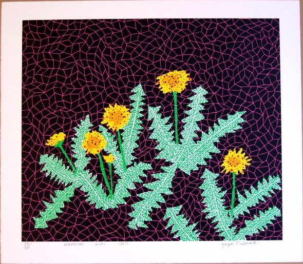 さきごろ日本女性で初の高松宮殿下記念第18回世界文化賞を受賞した草間彌生先生は、かぼちゃや野菜、花、帽子、靴などをモチーフに1979年から版画制作に本格的に取り組みます。