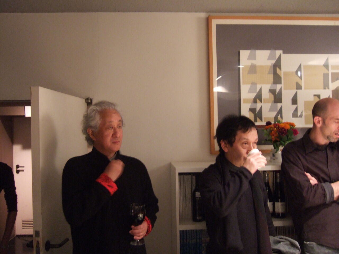 2006年12月27日磯崎新アトリエ忘年会にて、磯崎新先生(左)と青木宏さん(右)