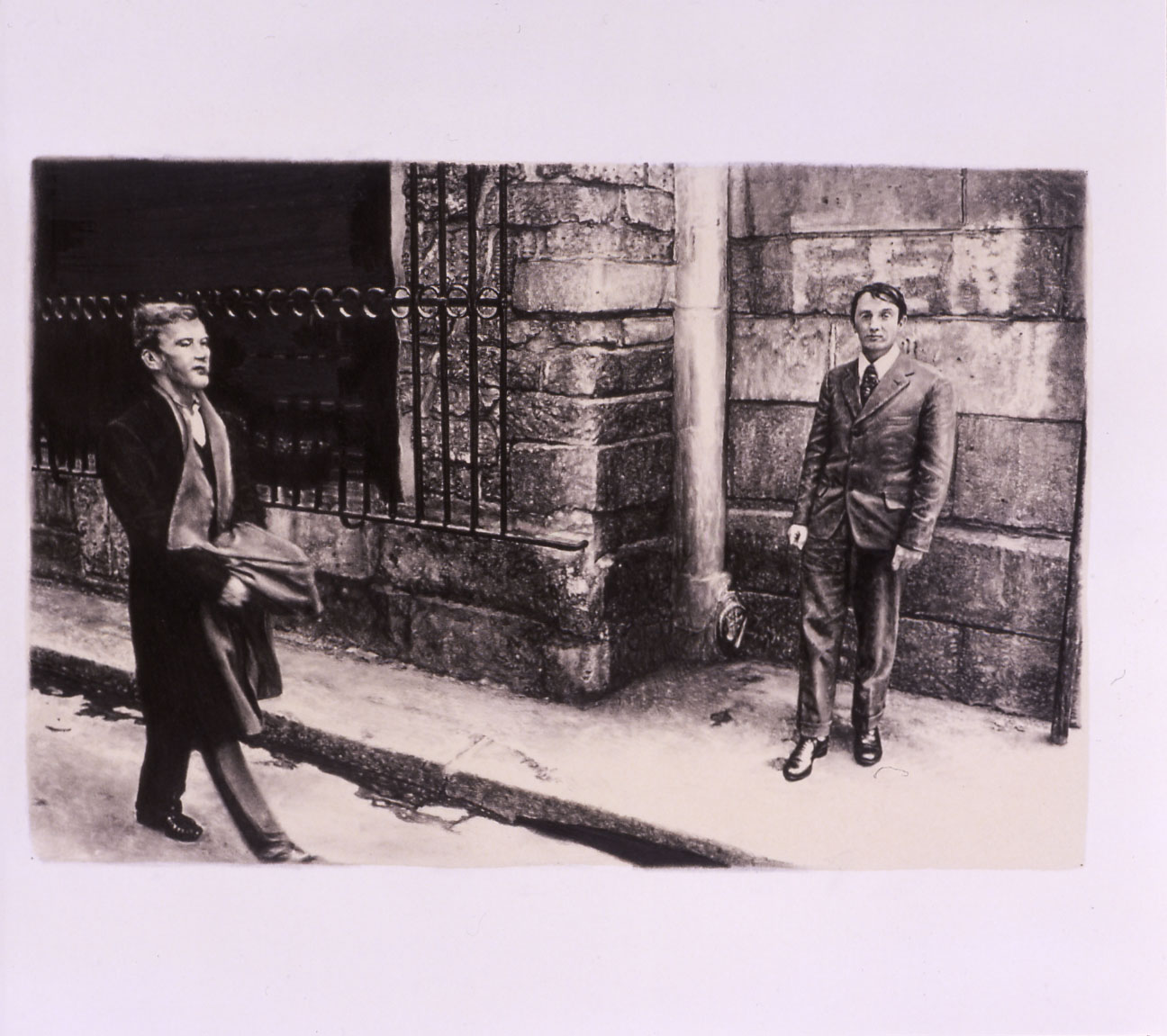 イギリスの二人組のパフォーマンス・アーティストとして有名なギルバート&ジョージの写真をもとに、一方はペアで、片方は一人だけを取り出して描いています。